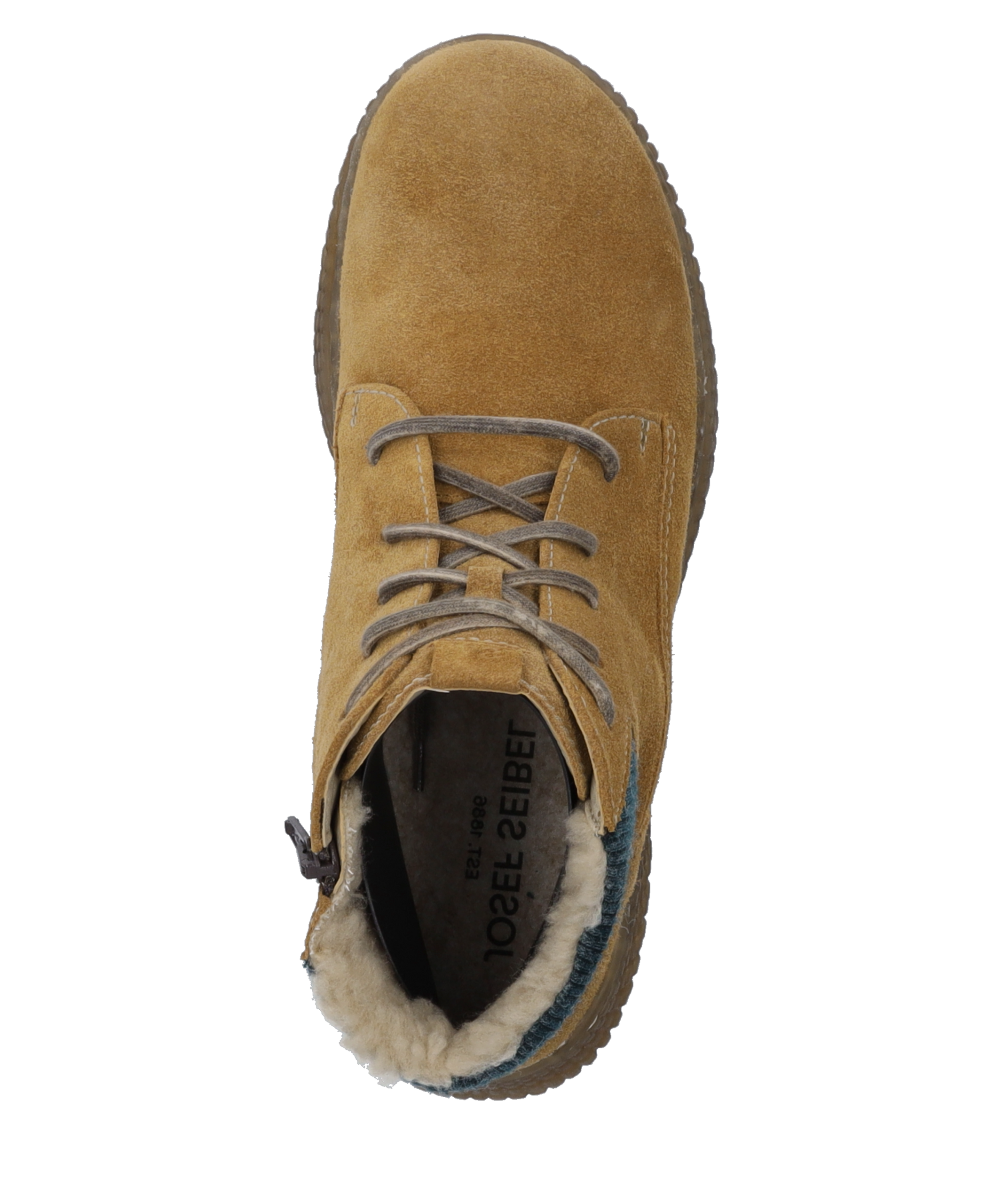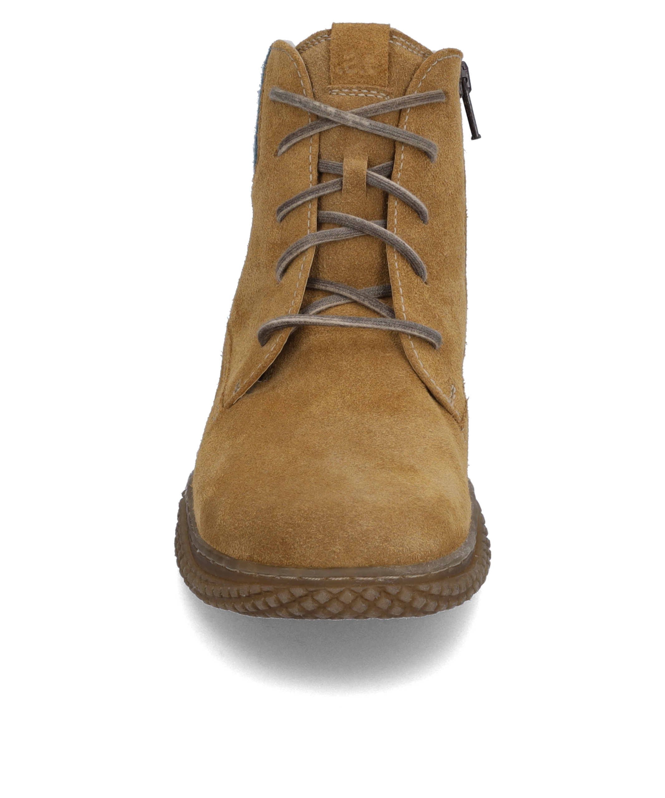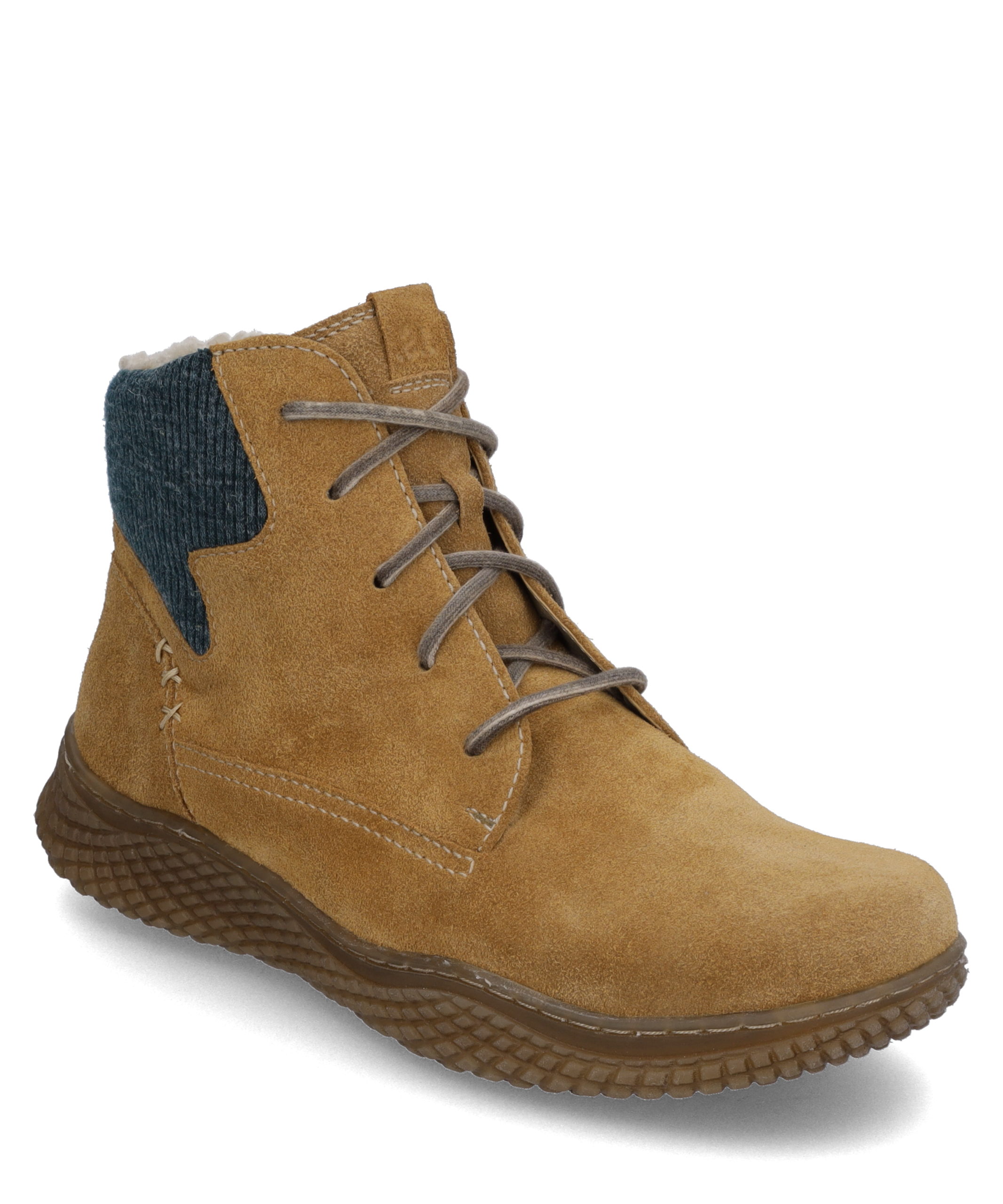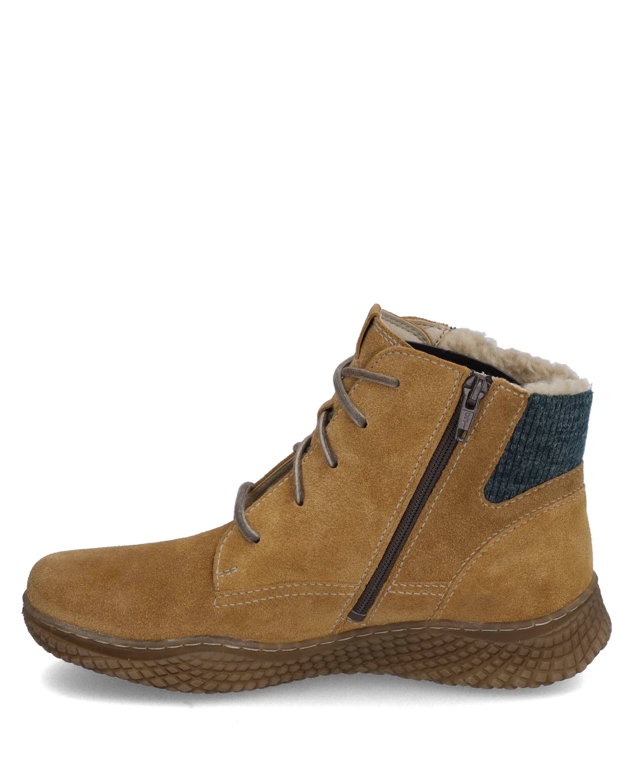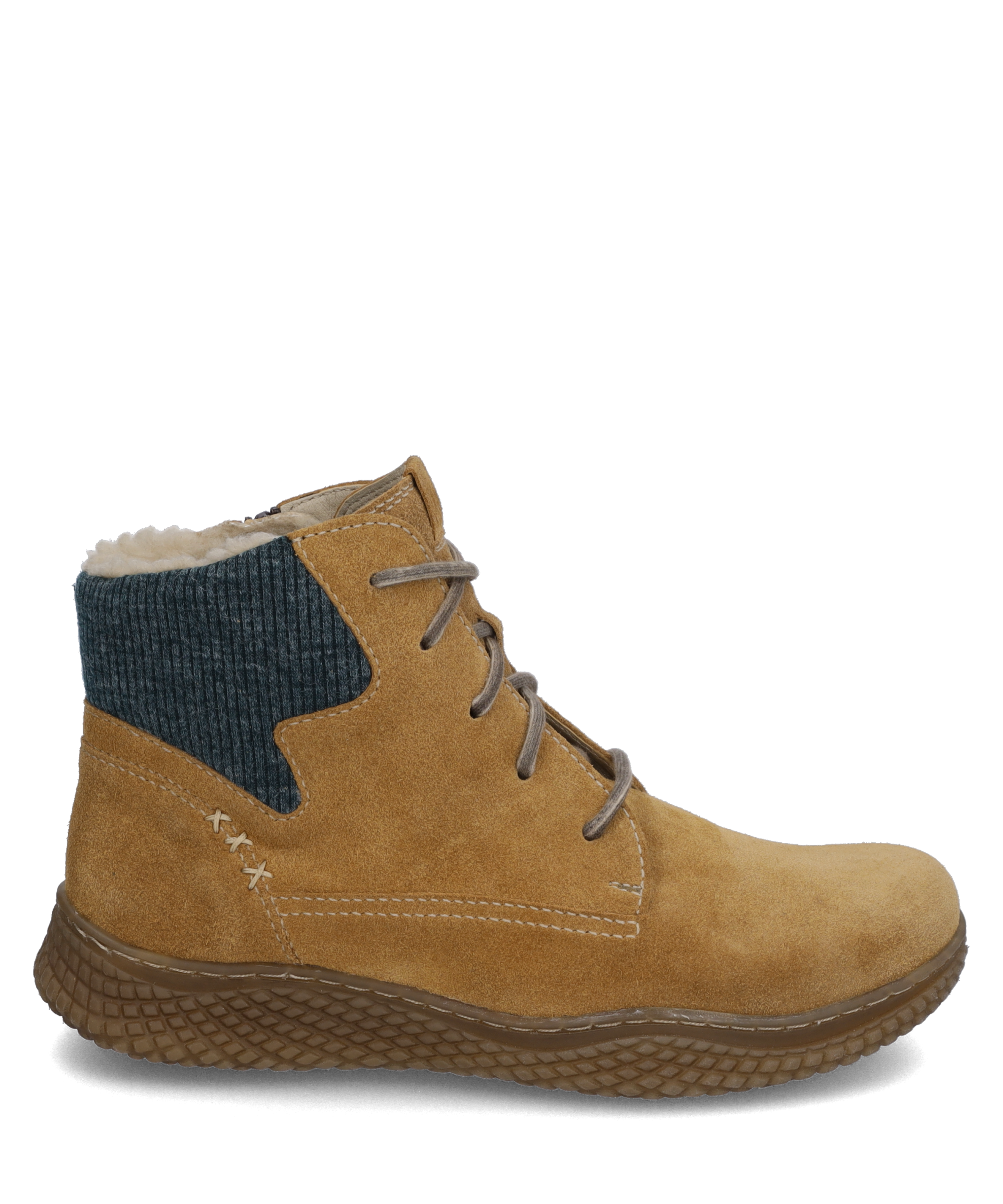 Amelie 09 in Camel – Damen Stiefelette Robuste TR-Sohle für sicheren Halt Hochwertiges Kalbsleder für Langlebigkeit Warm gefüttert für kalte Tage Schnürung für individuelle Passform Camel-Farbton für stilvolles Design Stilvoller Auftritt Mit der Amelie 09 in Camel von JOSEF SEIBEL bist du bestens gerüstet für die kalte Jahreszeit. Diese Damen Stiefelette vereint stilvolles Design mit höchstem Tragekomfort. Der warme Camel-Farbton und das hochwertige Kalbsleder machen sie zu einem echten Hingucker. Komfort trifft Funktion Die robuste TR-Sohle sorgt für sicheren Halt auf jedem Untergrund. Dank der Schnürung kannst du die Passform individuell anpassen, während der Reißverschluss ein einfaches An- und Ausziehen ermöglicht. Das warme Plüschfutter hält deine Füße auch an kalten Tagen angenehm warm. Qualität, die überzeugt JOSEF SEIBEL steht für Qualität und Tradition. Die Amelie 09 ist in der Strobel Machart gefertigt, was für zusätzliche Stabilität und Langlebigkeit sorgt. Die Kombination aus traditioneller Handnaht und modernem Design macht diesen Schuh zu einem Must-have für jede modebewusste Frau. Spirit of Nature Teil der Spirit of Nature Kollektion, verkörpert die Amelie 09 den Einklang von Natur und Stil. Die charakterstarke Optik und die durchdachten Details machen sie zu einem unverzichtbaren Begleiter in deinem Schuhschrank. Dein perfekter Begleiter Ob für einen Spaziergang im Park oder einen Stadtbummel, die Amelie 09 bietet dir den Komfort und die Eleganz, die du dir wünschst. Erlebe die perfekte Symbiose aus Design und Funktionalität mit dieser einzigartigen Stiefelette.