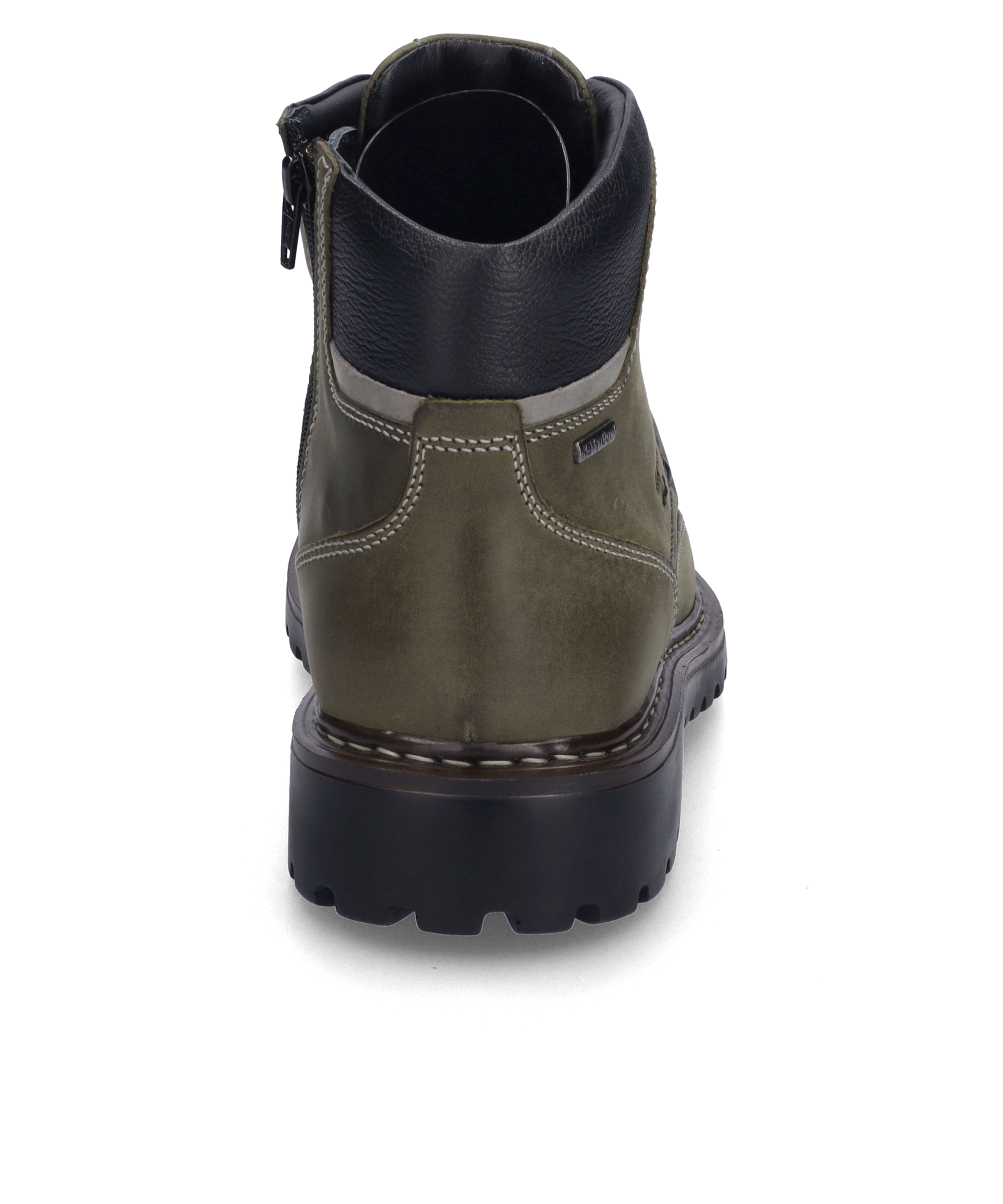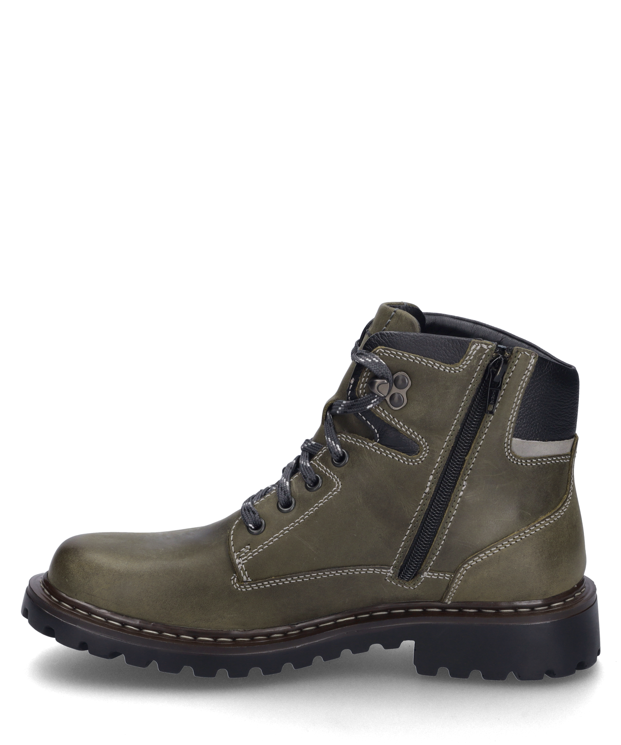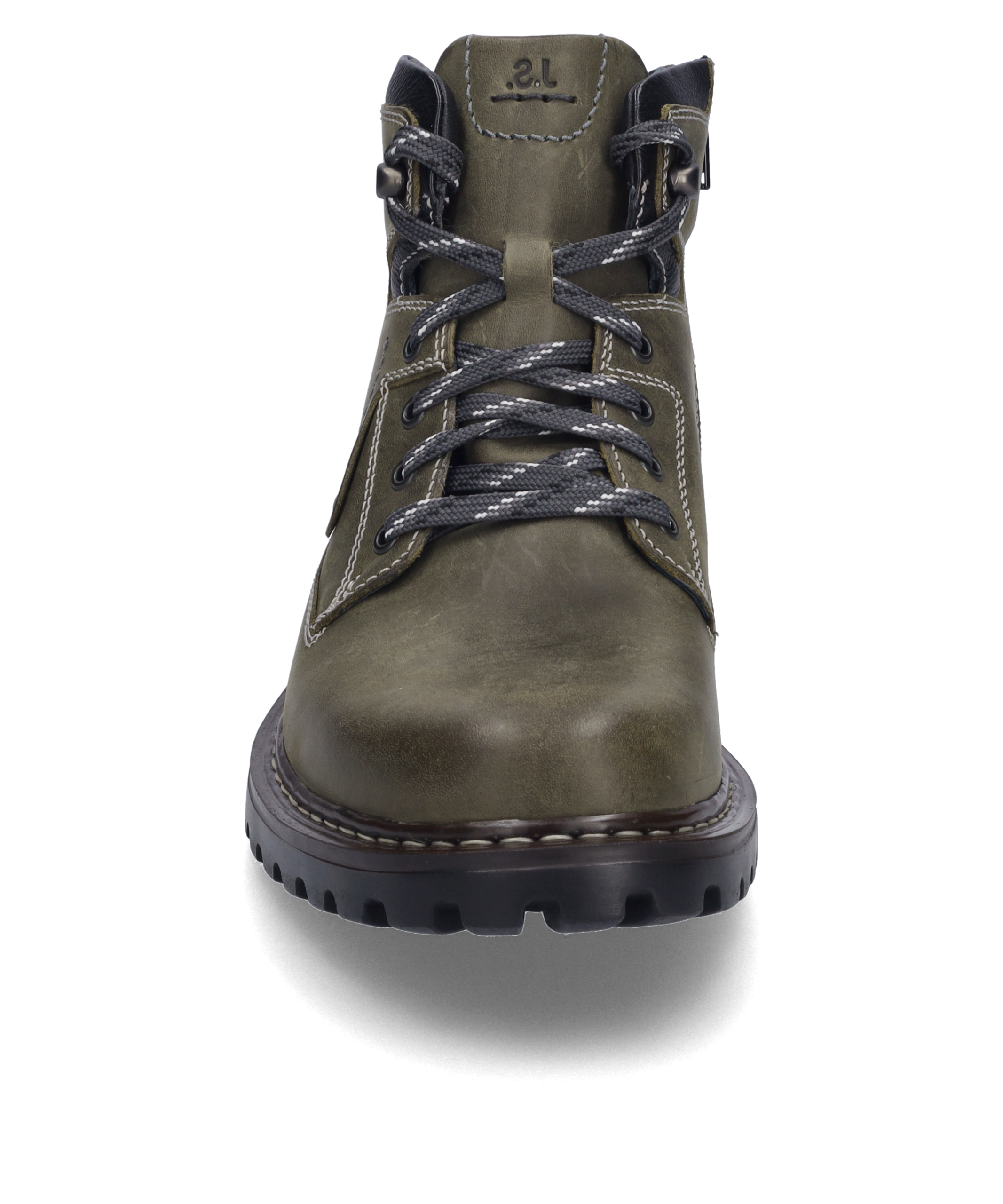 Chance 51 in Oliv-Kombi – Herren Stiefelette Robustes Rindsleder für langlebigen Schutz Wasserabweisend für trockene Füße Wechselfußbett für individuellen Komfort Profilierte PU-Sohle für sicheren Halt Stilvolle Schnürung für perfekten Sitz Robust und Langlebig Entdecke die Chance 51, eine Stiefelette, die mit ihrem robusten Rindsleder für langlebigen Schutz sorgt. Das hochwertige Material bietet nicht nur eine ansprechende Optik, sondern auch eine hervorragende Widerstandsfähigkeit gegen äußere Einflüsse. So bist du bestens gerüstet für alle Abenteuer, die auf dich warten. Komfort und Anpassung Mit dem Wechselfußbett kannst du den Komfort individuell anpassen. Egal, ob du den ganzen Tag auf den Beinen bist oder einen gemütlichen Spaziergang machst, diese Stiefelette passt sich deinen Bedürfnissen an. Die profilierte PU-Sohle sorgt zudem für sicheren Halt auf jedem Untergrund. Stilvoll und Funktional Die stilvolle Schnürung und der praktische Reißverschluss bieten nicht nur einen perfekten Sitz, sondern auch eine einfache Handhabung. Kombiniert mit der oliv-kombinierten Farbgebung, wird diese Stiefelette zu einem echten Hingucker in deinem Schuhschrank. Wetterfest und Praktisch Dank der wasserabweisenden Eigenschaften bleiben deine Füße auch bei schlechtem Wetter trocken. Die warme Plüschfütterung sorgt zusätzlich für ein angenehmes Tragegefühl, selbst an kalten Tagen. Innovative Fertigung Die AGO-Fertigungsart steht für eine innovative und formbeständige Machart. Diese Technik verbindet das Obermaterial mit der Sohle auf eine besonders stabile Weise, die für eine lange Lebensdauer sorgt. Vertraue auf die Qualität von JOSEF SEIBEL und erlebe den Unterschied.