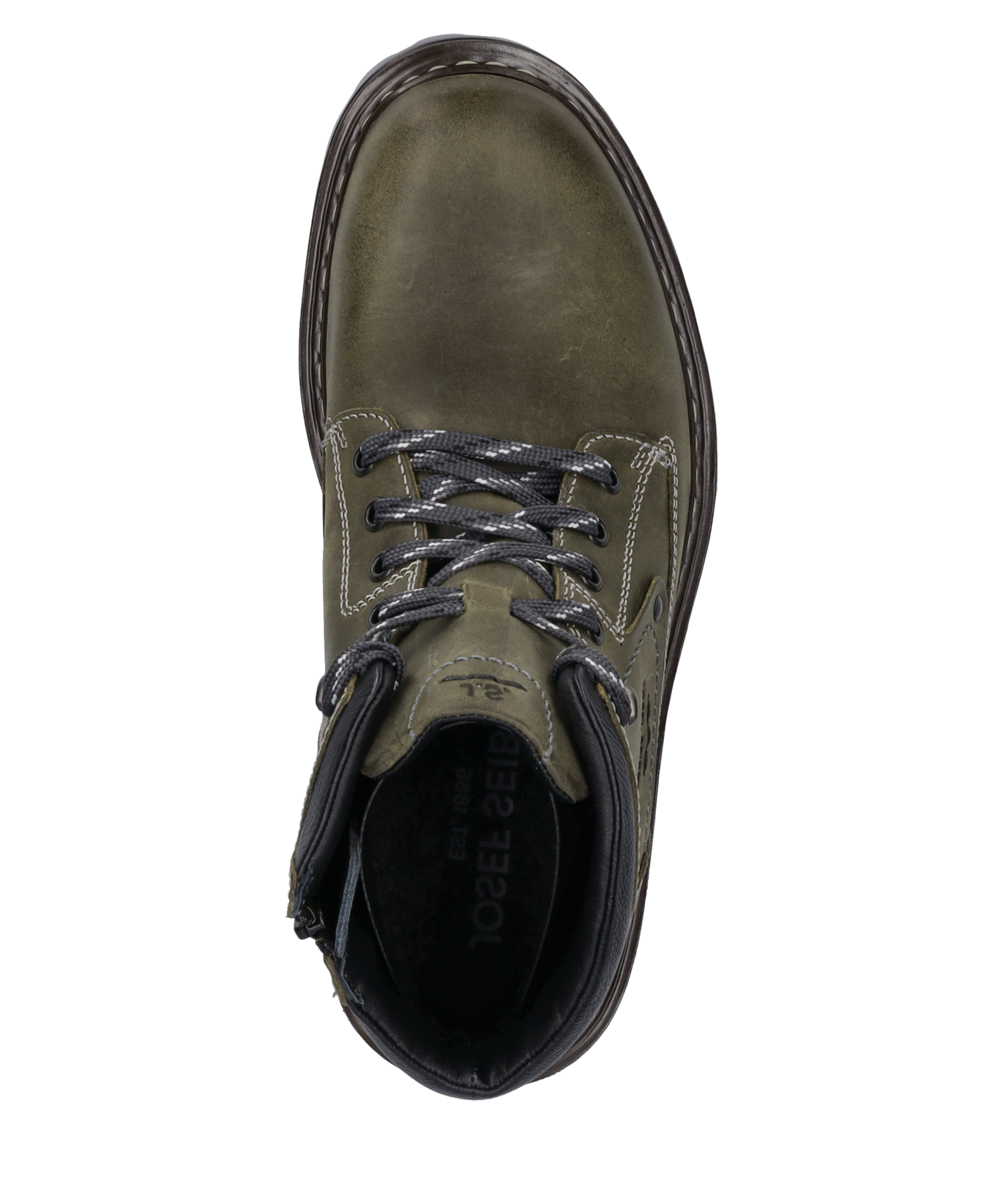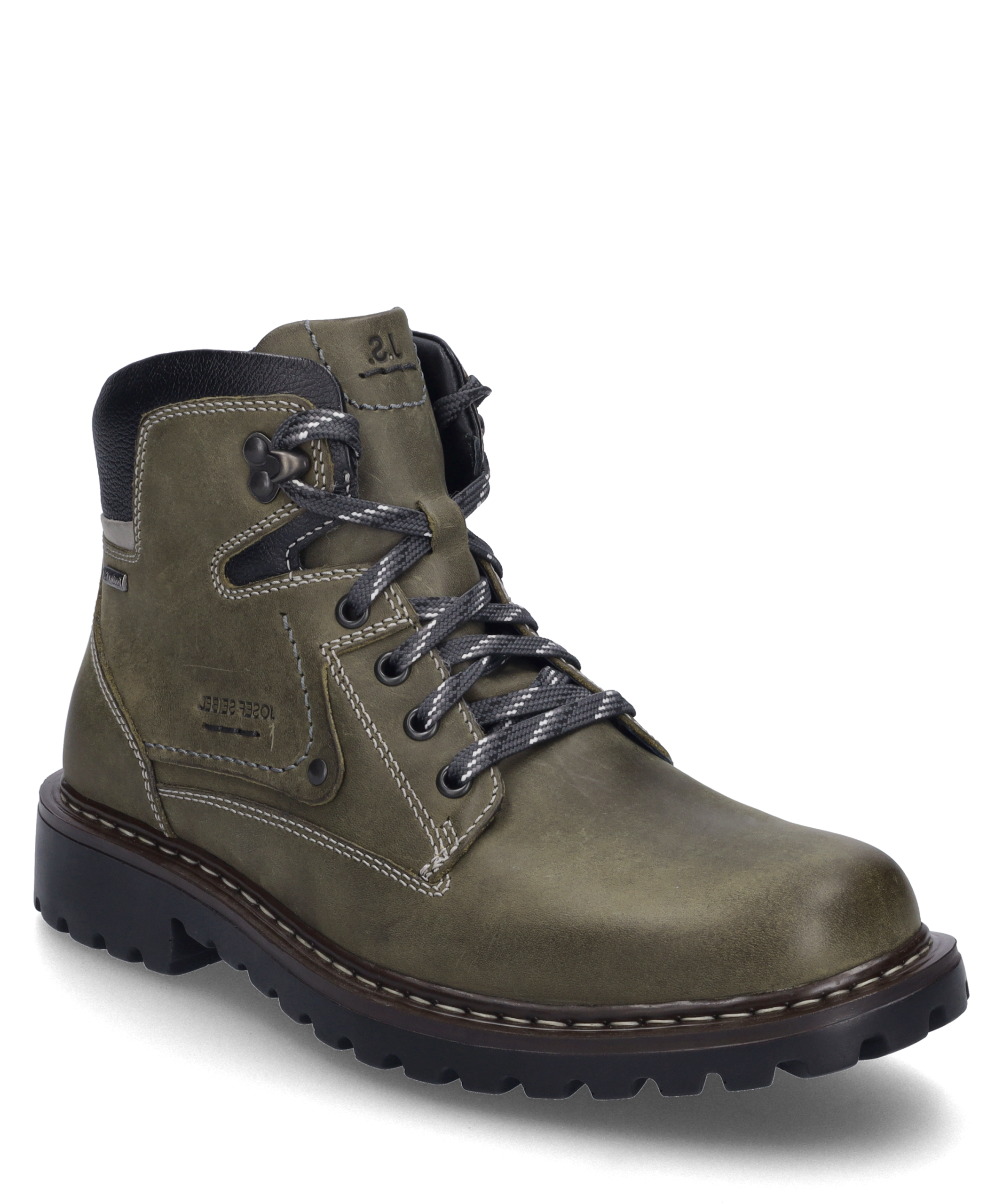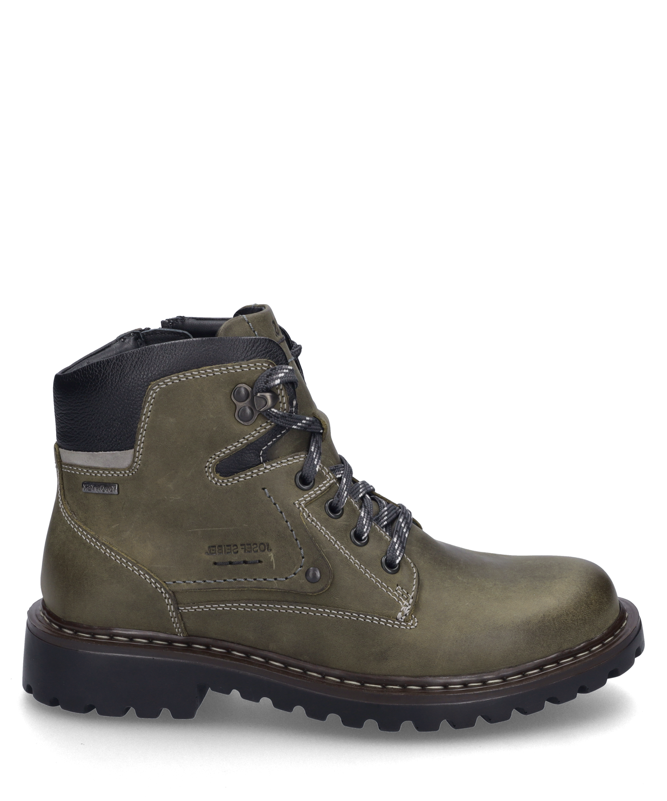 Chance 51 in Oliv-Kombi – Herren Stiefelette Robustes Rindsleder für langlebigen Schutz Wasserabweisend für trockene Füße Wechselfußbett für individuellen Komfort Profilierte PU-Sohle für sicheren Halt Stilvolle Schnürung für perfekten Sitz Robust und Langlebig Entdecke die Chance 51, eine Stiefelette, die mit ihrem robusten Rindsleder für langlebigen Schutz sorgt. Das hochwertige Material bietet nicht nur eine ansprechende Optik, sondern auch eine hervorragende Widerstandsfähigkeit gegen äußere Einflüsse. So bist du bestens gerüstet für alle Abenteuer, die auf dich warten. Komfort und Anpassung Mit dem Wechselfußbett kannst du den Komfort individuell anpassen. Egal, ob du den ganzen Tag auf den Beinen bist oder einen gemütlichen Spaziergang machst, diese Stiefelette passt sich deinen Bedürfnissen an. Die profilierte PU-Sohle sorgt zudem für sicheren Halt auf jedem Untergrund. Stilvoll und Funktional Die stilvolle Schnürung und der praktische Reißverschluss bieten nicht nur einen perfekten Sitz, sondern auch eine einfache Handhabung. Kombiniert mit der oliv-kombinierten Farbgebung, wird diese Stiefelette zu einem echten Hingucker in deinem Schuhschrank. Wetterfest und Praktisch Dank der wasserabweisenden Eigenschaften bleiben deine Füße auch bei schlechtem Wetter trocken. Die warme Plüschfütterung sorgt zusätzlich für ein angenehmes Tragegefühl, selbst an kalten Tagen. Innovative Fertigung Die AGO-Fertigungsart steht für eine innovative und formbeständige Machart. Diese Technik verbindet das Obermaterial mit der Sohle auf eine besonders stabile Weise, die für eine lange Lebensdauer sorgt. Vertraue auf die Qualität von JOSEF SEIBEL und erlebe den Unterschied.