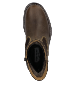Chance in moro – Herren Stiefel Hochwertiges Rindsleder für Langlebigkeit Praktischer Reißverschluss für einfaches Anziehen Warme Fütterung für kalte Tage Profilierte PU-Sohle für sicheren Halt Markanter Look durch sichtbare Nähte Eleganz trifft auf Funktion Erlebe den perfekten Mix aus Stil und Funktionalität mit unserem Herrenstiefel Chance in der Farbe moro. Gefertigt aus hochwertigem Rindsleder, bietet dieser Stiefel nicht nur eine beeindruckende Optik, sondern auch eine bemerkenswerte Langlebigkeit. Die sichtbaren Nähte verleihen dem Stiefel einen markanten Look, der in jeder Situation überzeugt. Komfort für kalte Tage Mit einer warmen Lammfellfütterung ausgestattet, hält dieser Stiefel deine Füße auch an den kältesten Tagen angenehm warm. Das weiche Innenmaterial sorgt für ein kuscheliges Tragegefühl, während die Lammfell-Decksohle zusätzlichen Komfort bietet. Praktikabilität im Alltag Der praktische Reißverschluss ermöglicht ein einfaches An- und Ausziehen, sodass du schnell und unkompliziert startklar bist. Die AGO-Fertigungsart sorgt für eine stabile Verbindung zwischen Obermaterial und Sohle, was die Langlebigkeit des Stiefels zusätzlich erhöht. Sicherer Halt auf jedem Untergrund Die profilierte PU-Sohle bietet dir sicheren Halt auf verschiedensten Untergründen. Dank der hervorragenden Dämpfeigenschaften des Polyurethans genießt du bei jedem Schritt ein angenehmes Laufgefühl. Ein Stiefel für alle Gelegenheiten Ob im Alltag oder bei besonderen Anlässen, der Chance Stiefel von JOSEF SEIBEL ist dein verlässlicher Begleiter. Er vereint modernen Komfort mit perfekter Passform und hochwertigen Materialien, die dich nie im Stich lassen.