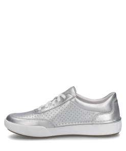 Claire 29 in Silber – Damen Sneaker Glänzendes Ziegenleder für edlen Look Perforationen für optimale Atmungsaktivität Wechselfußbett für individuellen Komfort Rutschfeste TR-Gummisohle für Sicherheit Klassische Schnürung für perfekten Sitz Eleganz trifft Komfort Entdecke den Claire 29 Sneaker von JOSEF SEIBEL, der Eleganz und Komfort in einem einzigartigen Design vereint. Das glänzende Ziegenleder verleiht diesem Schuh einen edlen Look, der sich perfekt für jeden Anlass eignet. Die dezenten Perforationen sorgen nicht nur für ein stilvolles Erscheinungsbild, sondern auch für eine hervorragende Atmungsaktivität, die Deine Füße den ganzen Tag über frisch hält. Individueller Komfort Mit dem Wechselfußbett kannst Du den Komfort individuell anpassen. Egal, ob Du den Sneaker für einen langen Spaziergang oder einen entspannten Tag in der Stadt trägst, Deine Füße werden es Dir danken. Die Strobel Machart sorgt zudem für zusätzliche Stabilität und Langlebigkeit. Sicherheit und Stil Die rutschfeste TR-Gummisohle bietet Dir die nötige Sicherheit auf jedem Untergrund. Gleichzeitig bleibt der Sneaker leicht und flexibel, sodass Du Dich frei bewegen kannst. Die klassische Schnürung ermöglicht einen perfekten Sitz und rundet das sportlich-moderne Design ab. Perfektion in jedem Detail JOSEF SEIBEL steht für modernen Komfort und Perfektion in Passform und Funktion. Hochwertige Materialien und eine sorgfältige Verarbeitung machen den Claire 29 Sneaker zu einem unverzichtbaren Begleiter in Deinem Schuhschrank. Lass Dich von der Qualität und dem Design überzeugen und erlebe, wie dieser Sneaker Deinen Alltag bereichert.