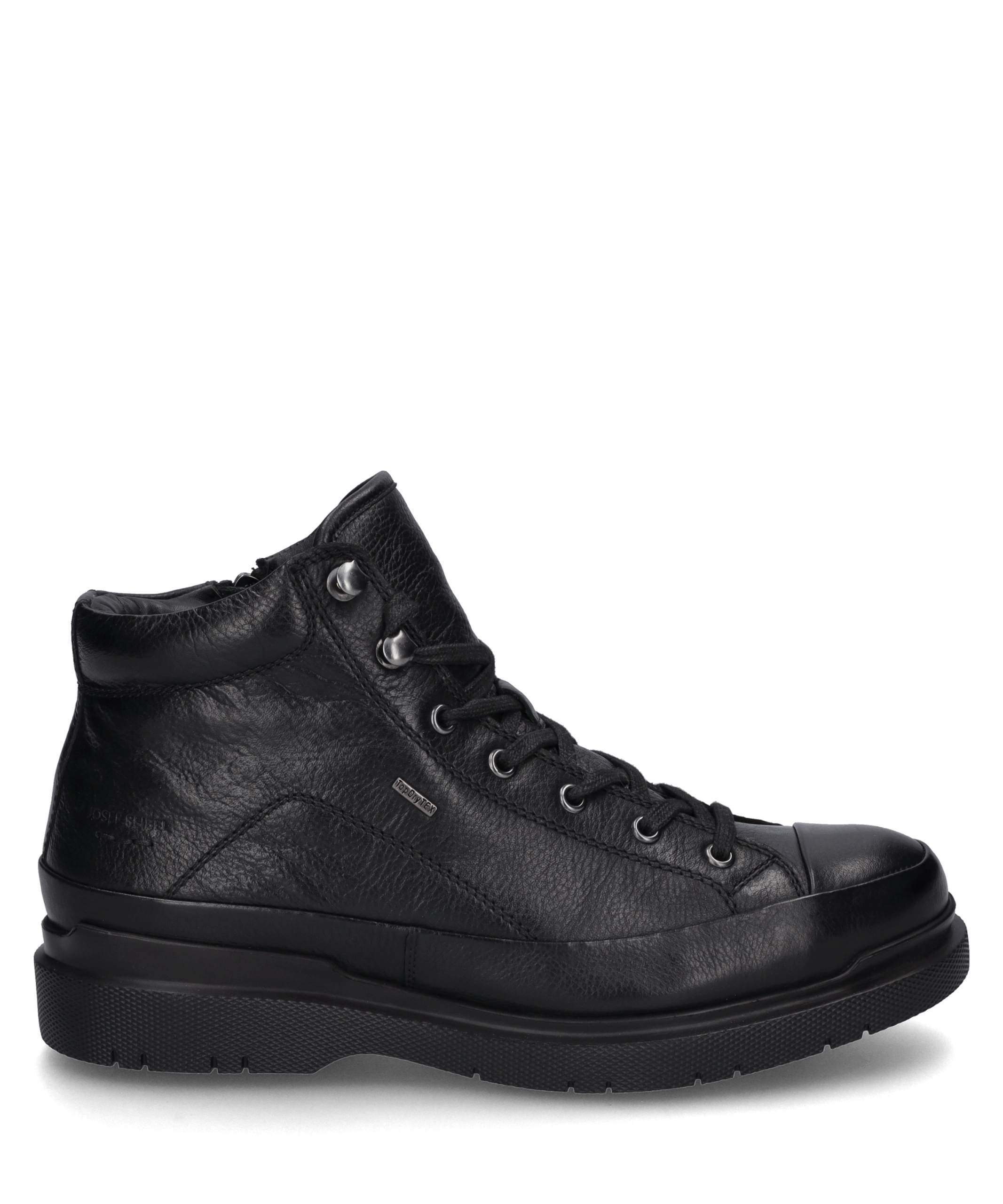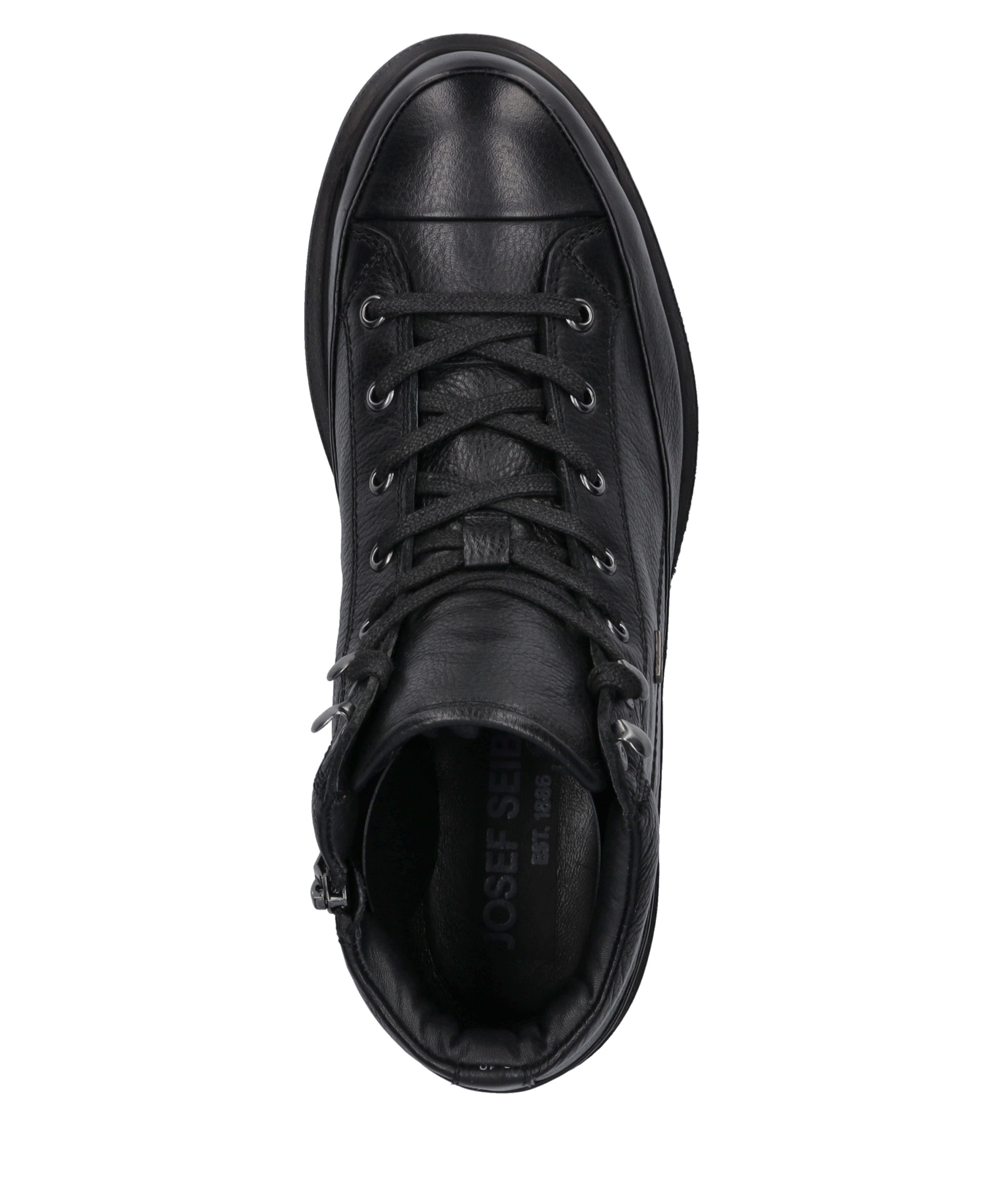 Dalton 51 in Schwarz – Herren Stiefelette Wasserabweisend für nasse Tage Wechselfußbett für individuellen Komfort EVA-Sohle für optimalen Halt Lederoptik für eleganten Look Schnürung für sicheren Sitz Eleganz trifft Funktionalität Entdecke die perfekte Kombination aus Stil und Komfort mit unserer Dalton 51 Stiefelette. Diese elegante schwarze Stiefelette für Herren ist aus hochwertigem Rindsleder gefertigt und bietet Dir nicht nur einen stilvollen Look, sondern auch die Funktionalität, die Du im Alltag benötigst. Robust und Wasserabweisend Dank der wasserabweisenden Eigenschaften bist Du bestens für nasse Tage gerüstet. Die robuste, profilierte Sohle sorgt für optimalen Halt, während der leicht gepolsterte Schaft zusätzlichen Komfort bietet. Individueller Komfort Mit dem Wechselfußbett kannst Du den Komfort individuell anpassen. Egal, ob Du den ganzen Tag auf den Beinen bist oder einen langen Spaziergang planst, Deine Füße werden es Dir danken. AGO-Fertigungsart Unsere Stiefelette wird in der innovativen AGO-Machart gefertigt. Diese Methode verbindet das Obermaterial aus Nappa-Leder mit der Innensohle und sorgt für eine langlebige und formbeständige Konstruktion. Stilvoller Verschluss Die Kombination aus Schnürung und Reißverschluss bietet Dir nicht nur einen sicheren Sitz, sondern auch eine einfache Handhabung. Die metallenen Ösen verleihen der Stiefelette einen zusätzlichen Hauch von Eleganz. Erlebe mit der Dalton 51 Stiefelette von JOSEF SEIBEL einen Schuh, der keine Kompromisse zwischen Stil und Funktionalität eingeht. Perfekt für den modernen Mann, der Wert auf Qualität und Design legt.
