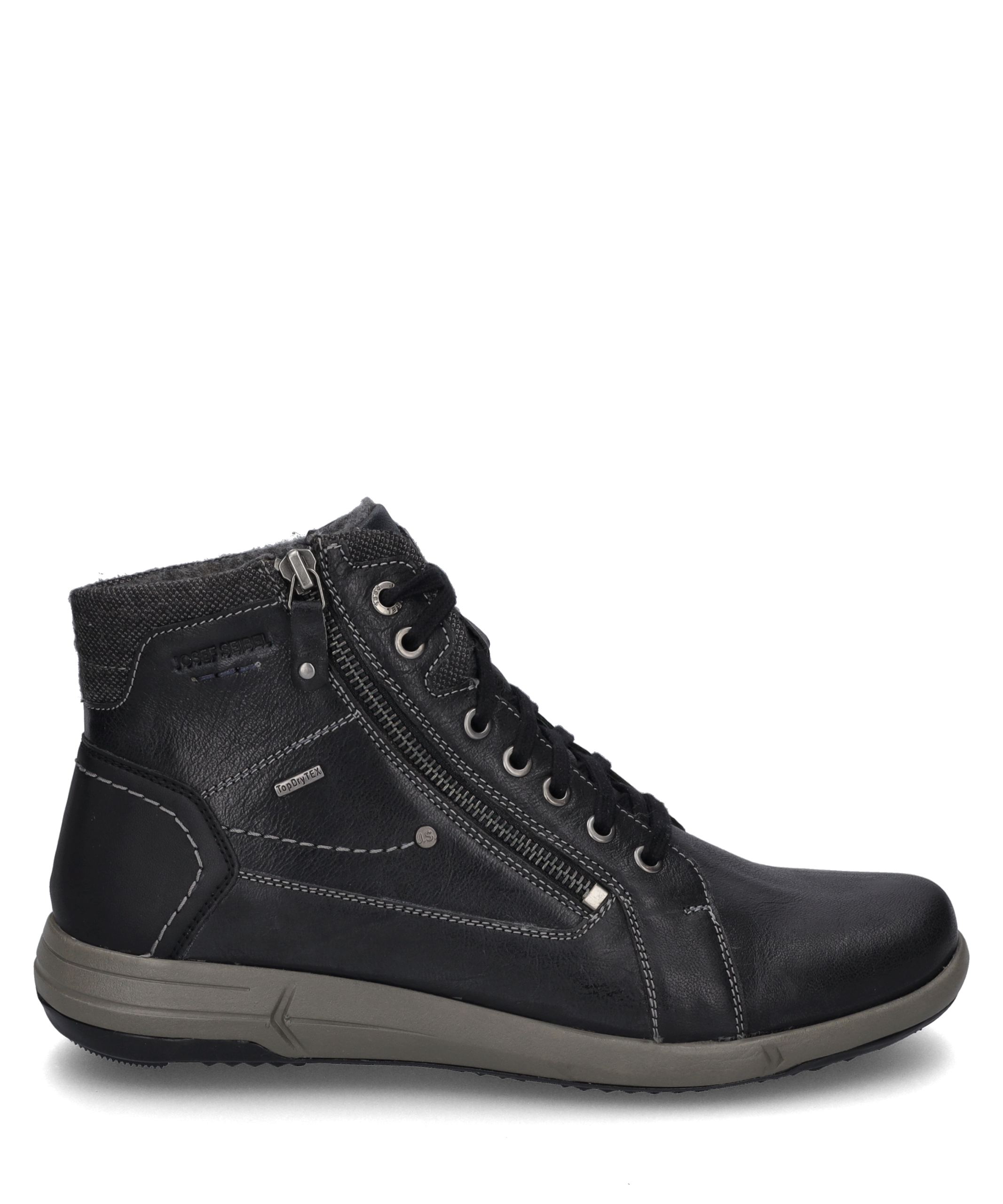 Enrico 55 in Schwarz – Herren Stiefelette Wasserabweisend für trockene Füße Wechselfußbett für individuellen Komfort EVA/TR-Sohle für sicheren Halt Glattleder für elegantes Design Schnürung für perfekte Passform Eleganz trifft Funktionalität Entdecke die perfekte Kombination aus Stil und Komfort mit unserer Enrico 55 Stiefelette. Diese schwarze Stiefelette aus hochwertigem Glattleder bietet nicht nur ein elegantes Design, sondern auch eine Vielzahl von Funktionen, die Deinen Alltag erleichtern. Die dezente Ziernaht verleiht dem Schuh einen modernen Touch, während die Schnürung und der seitliche Reißverschluss für eine optimale Passform sorgen. Komfort auf höchstem Niveau Mit dem Wechselfußbett kannst Du den Komfort individuell anpassen. Egal, ob Du den ganzen Tag auf den Beinen bist oder einen gemütlichen Spaziergang machst, die Enrico 55 Stiefelette bietet Dir den Halt und die Unterstützung, die Du benötigst. Das warme Plüschfutter sorgt zudem für ein angenehmes Tragegefühl, selbst an kälteren Tagen. Sicherer Halt bei jedem Schritt Die Sohle aus EVA und TR garantiert Dir einen sicheren Halt auf verschiedensten Untergründen. Dank der rutschfesten Eigenschaften des thermoplastischen Kautschuks kannst Du Dich auf einen stabilen Stand verlassen, egal wohin Dich Dein Weg führt. Perfekt für jede Gelegenheit Ob im Büro, beim Stadtbummel oder bei einem Treffen mit Freunden, die Enrico 55 Stiefelette ist Dein idealer Begleiter. Das wasserabweisende Material hält Deine Füße trocken, während das elegante Design zu jedem Outfit passt. Qualität von JOSEF SEIBEL Als Teil der JOSEF SEIBEL Kollektion steht die Enrico 55 Stiefelette für modernen Komfort und Perfektion in Passform und Funktion. Hochwertige Materialien und die Strobel Machart sorgen für Langlebigkeit und Stabilität. Vertraue auf die Qualität und das Know-how von JOSEF SEIBEL und erlebe Schuhe, die Deinen Ansprüchen gerecht werden.