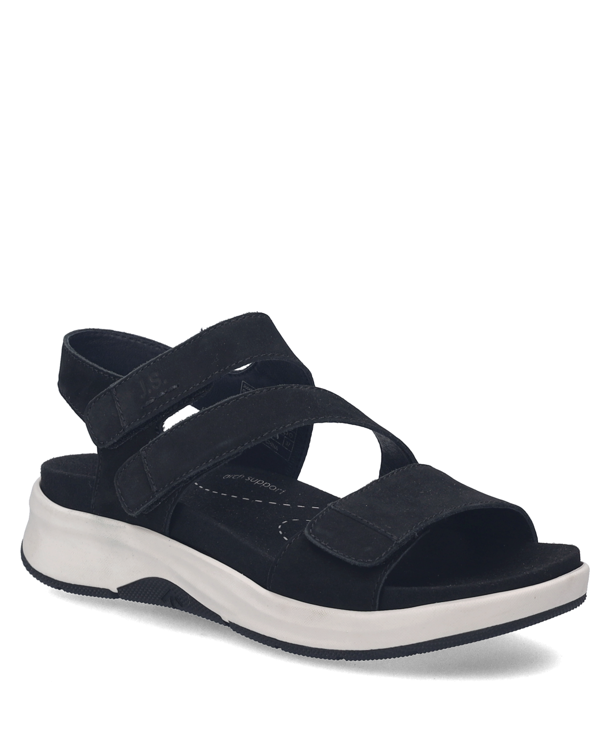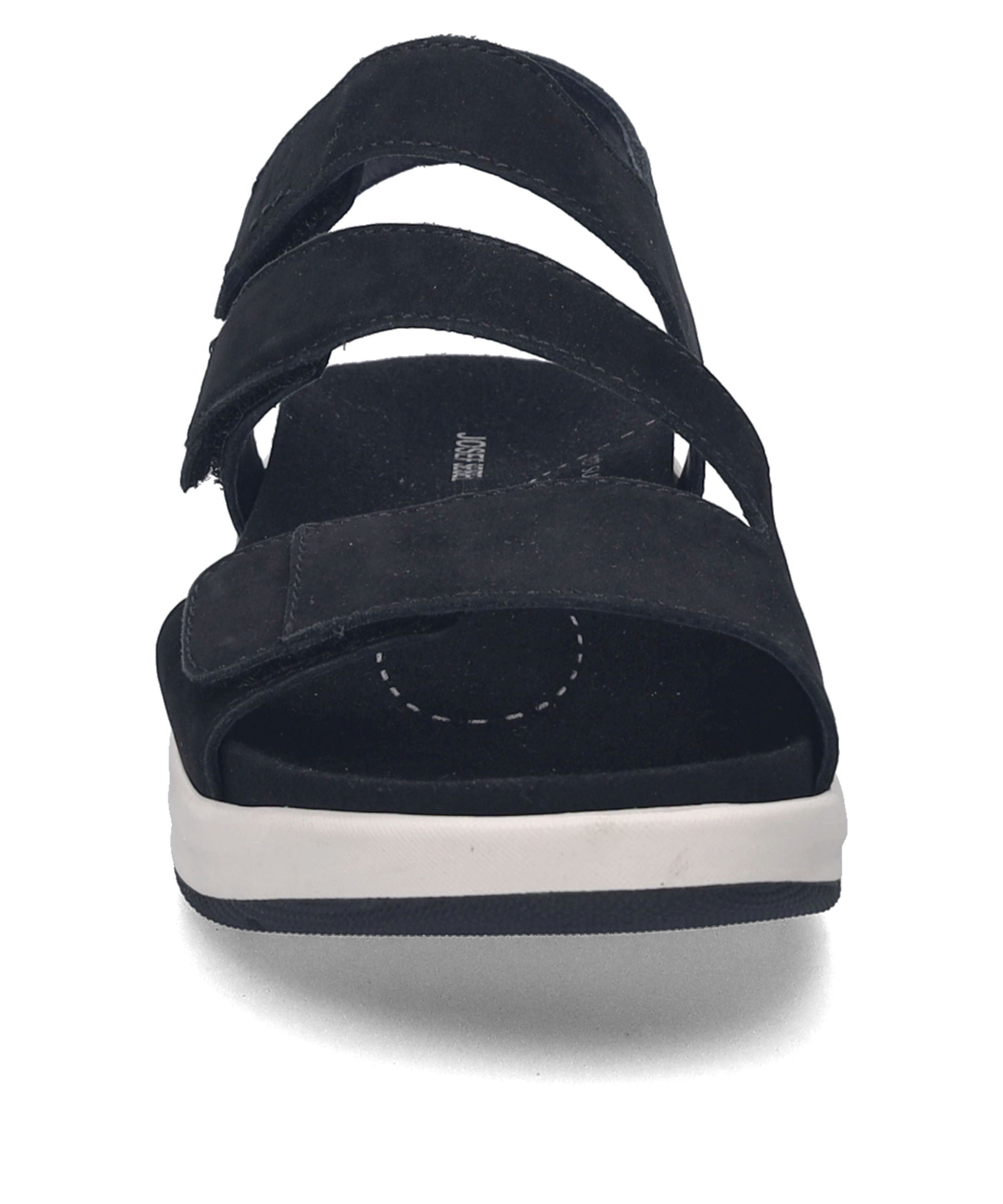Estelle 03 in Schwarz – Damen Sandale Weiches Nubukleder für maximalen Komfort Praktischer Klettverschluss für einfaches Anziehen EVA/Gummi-Sohle für optimalen Halt Wechselfußbett für individuelle Anpassung Schlichtes Design in elegantem Schwarz Eleganz trifft Komfort Mit der Estelle 03 Sandale von JOSEF SEIBEL erlebst Du eine perfekte Kombination aus Stil und Bequemlichkeit. Das weiche Nubukleder umschmeichelt Deinen Fuß und sorgt für ein angenehmes Tragegefühl, während das schlichte Design in elegantem Schwarz zu jedem Outfit passt. Praktische Details Der praktische Klettverschluss ermöglicht ein einfaches An- und Ausziehen, sodass Du schnell und unkompliziert startklar bist. Die strapazierfähige EVA/Gummi-Sohle bietet Dir optimalen Halt auf jedem Untergrund, egal ob Du in der Stadt unterwegs bist oder einen Spaziergang im Park machst. Individuelle Anpassung Dank des Wechselfußbetts kannst Du die Sandale individuell an Deine Bedürfnisse anpassen. Diese Funktion sorgt für maximalen Komfort und unterstützt Deine Füße bei jedem Schritt. Die innovative MultiFit Technologie bietet Dir zwei Weiten in einem Schuh, sodass Du immer die perfekte Passform findest. Qualität, die überzeugt Die Fertigung in Strobel Machart garantiert eine hohe Stabilität und Langlebigkeit. JOSEF SEIBEL steht für Qualität und technische Raffinesse, die Du bei jedem Tragen spüren wirst. Die Kombination aus Rindsleder und der robusten Sohle macht die Estelle 03 zu einem verlässlichen Begleiter für jeden Tag. Ein Schuh für alle Gelegenheiten Ob im Büro, beim Einkaufen oder bei einem Treffen mit Freunden – die Estelle 03 Sandale ist immer die richtige Wahl. Ihr zeitloses Design und die hochwertigen Materialien machen sie zu einem Must-have in Deinem Schuhschrank. Erlebe den Unterschied und genieße jeden Schritt mit JOSEF SEIBEL.