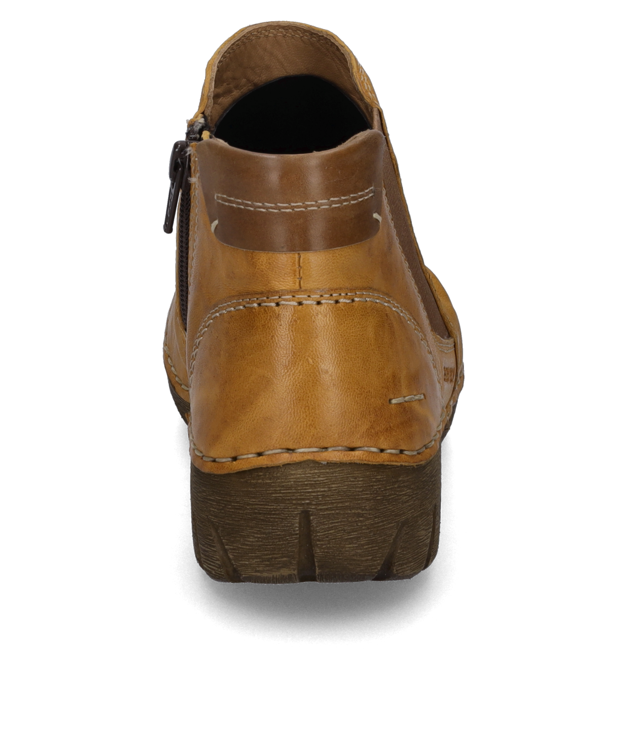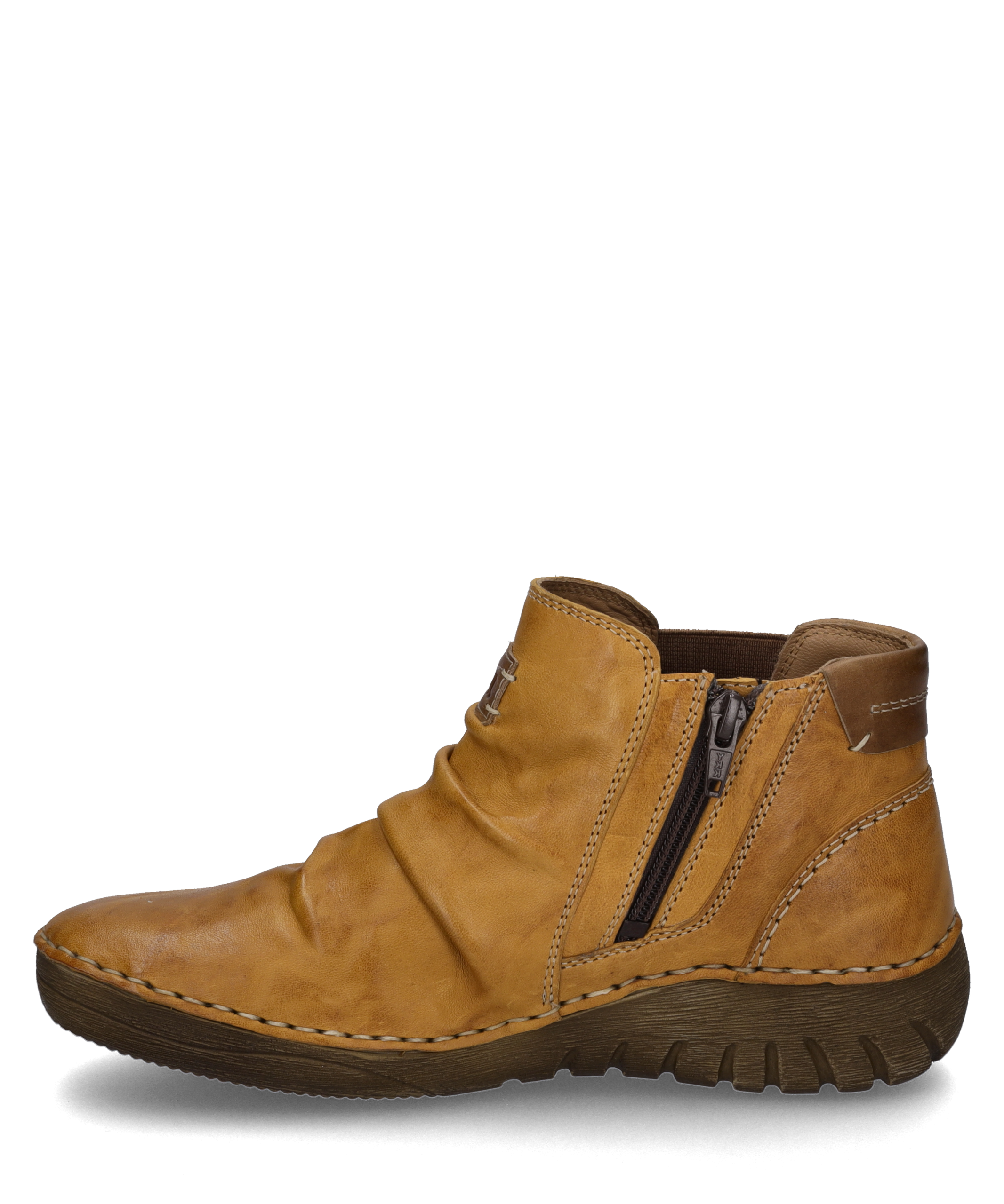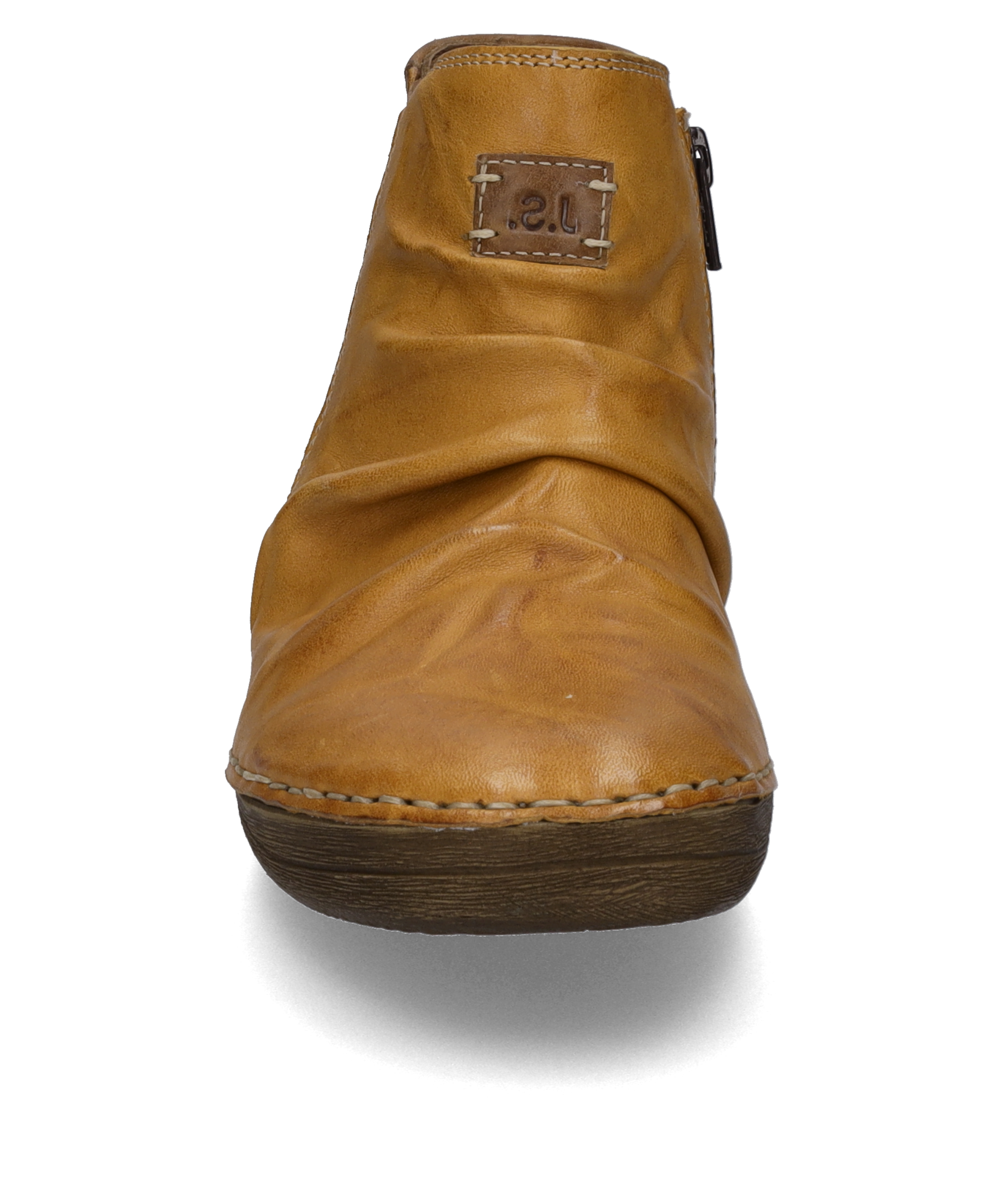 Felicia 03 in safran-kombi – Damen Stiefelette Robuste PU-Sohle für sicheren Halt Hochwertiges Ziegenleder für Langlebigkeit Seitlicher Reißverschluss für einfaches Anziehen Wechselfußbett für individuellen Komfort Rustikaler Look durch Ziernähte Stilvoller Auftritt Erlebe mit unserer Felicia 03 Stiefelette in safran-kombi einen stilvollen Auftritt, der durch das charakterstarke Design besticht. Die Kombination aus hochwertigem Ziegenleder und der traditionellen Handnaht verleiht diesem Schuh eine besondere Note, die sowohl Langlebigkeit als auch Eleganz verspricht. Komfort trifft Funktion Der seitliche Reißverschluss ermöglicht ein einfaches Anziehen, während das Wechselfußbett individuellen Komfort bietet. So kannst du den Schuh perfekt an deine Bedürfnisse anpassen und den ganzen Tag über ein angenehmes Tragegefühl genießen. Robust und Sicher Die robuste PU-Sohle sorgt für sicheren Halt auf jedem Untergrund. Dank der hervorragenden Dämpfungseigenschaften des Polyurethans erlebst du ein leichtes und komfortables Laufgefühl, das dich bei jedem Schritt unterstützt. Traditionelle Handwerkskunst Unsere Stiefelette verkörpert echte deutsche Industriekultur durch die aufwändige Handnaht. Diese Fertigungsart ist nicht nur ein Zeichen von Qualität, sondern auch von liebevoller Handarbeit, die in jedem Detail spürbar ist. Spirit of Nature Teil der "Spirit of Nature" Kollektion, vereint dieser Schuh Style und Komfort auf einzigartige Weise. Lass dich von der natürlichen Ausstrahlung und dem rustikalen Look inspirieren und genieße die Verbindung von Tradition und modernem Design.