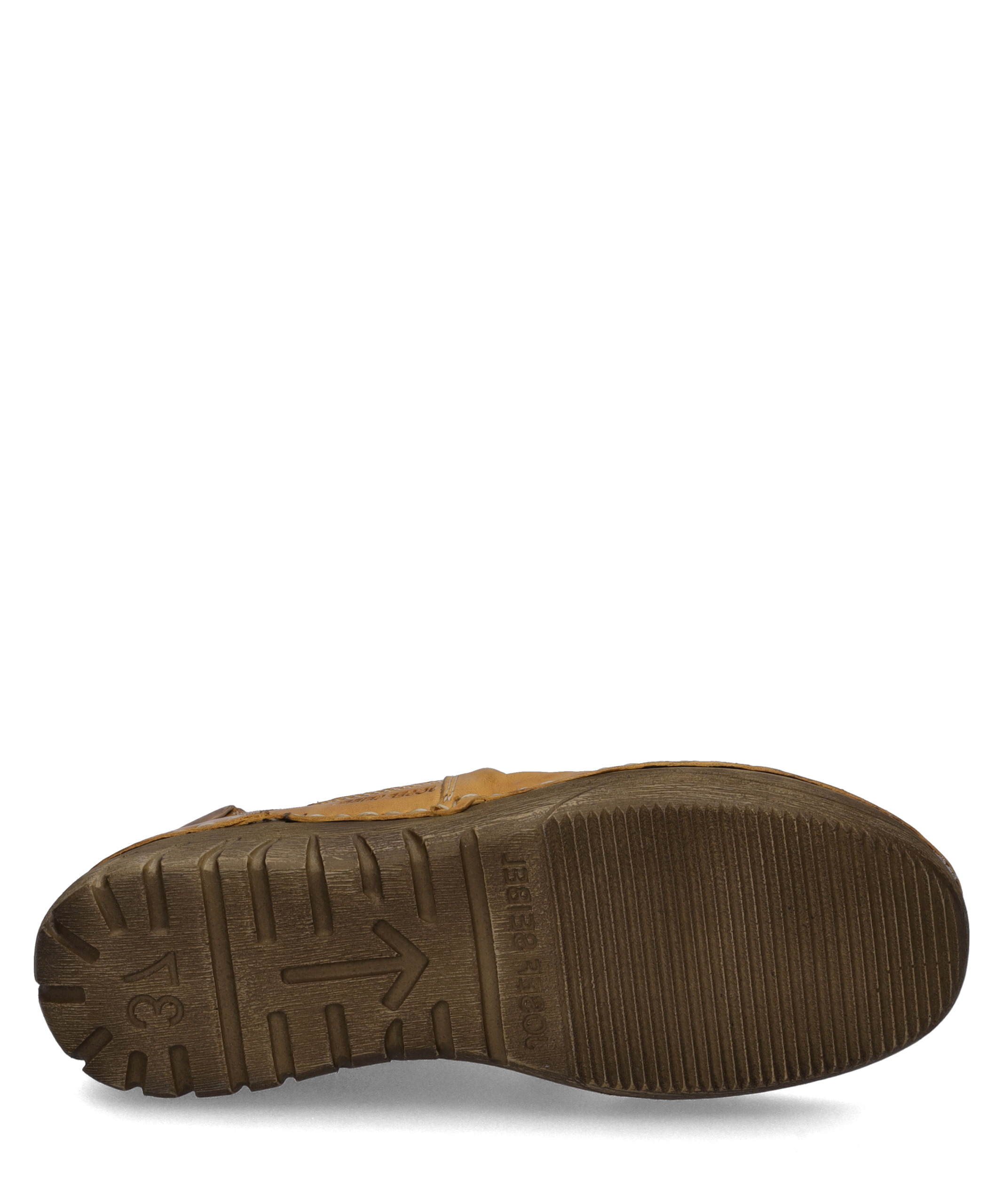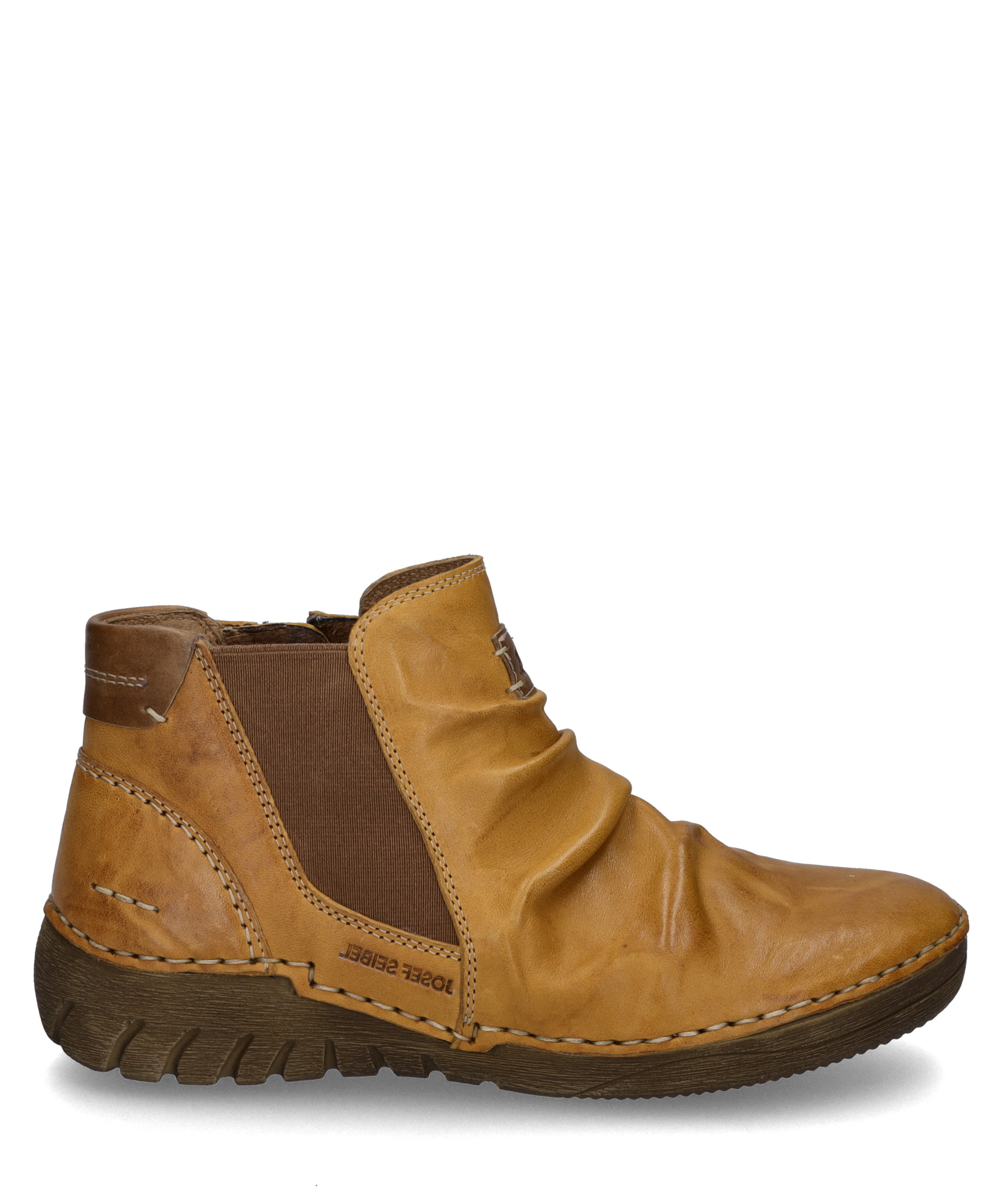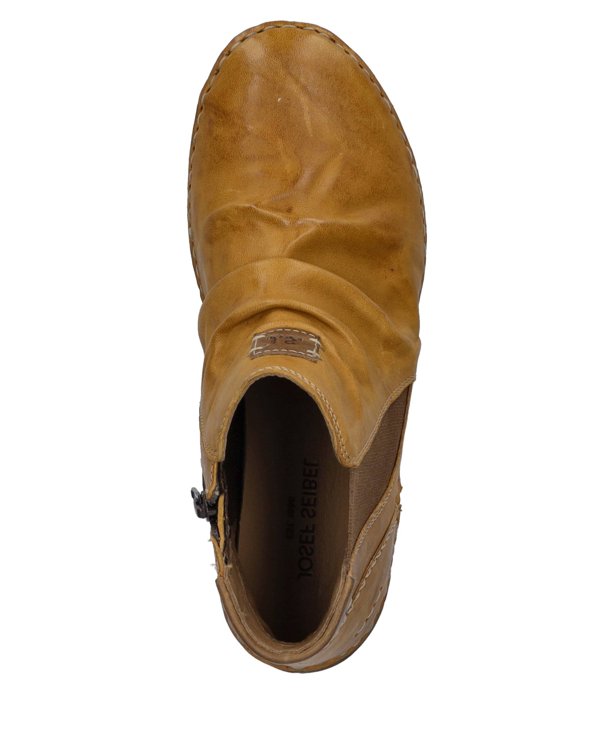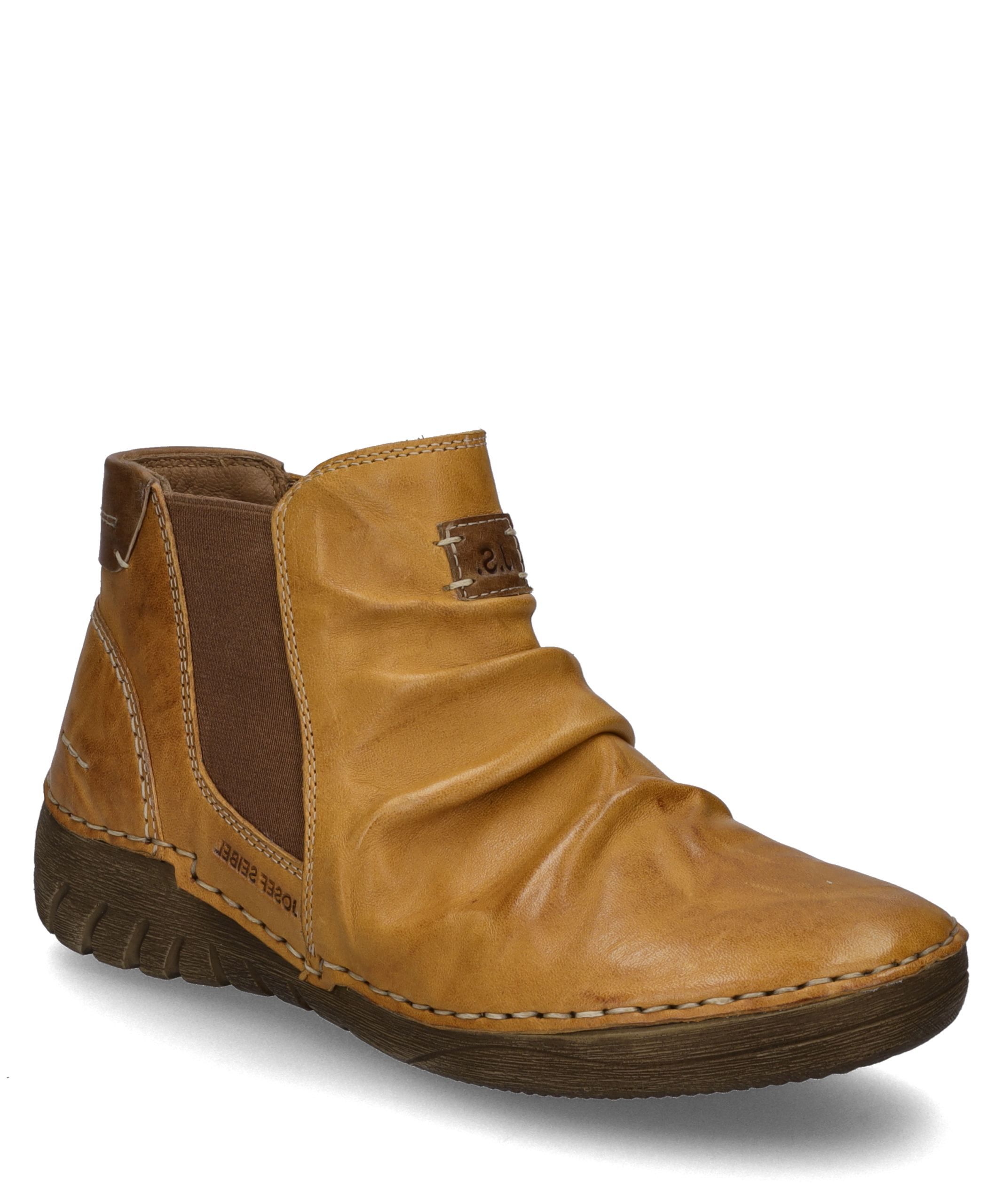 Felicia 03 in safran-kombi – Damen Stiefelette Robuste PU-Sohle für sicheren Halt Hochwertiges Ziegenleder für Langlebigkeit Seitlicher Reißverschluss für einfaches Anziehen Wechselfußbett für individuellen Komfort Rustikaler Look durch Ziernähte Stilvoller Auftritt Erlebe mit unserer Felicia 03 Stiefelette in safran-kombi einen stilvollen Auftritt, der durch das charakterstarke Design besticht. Die Kombination aus hochwertigem Ziegenleder und der traditionellen Handnaht verleiht diesem Schuh eine besondere Note, die sowohl Langlebigkeit als auch Eleganz verspricht. Komfort trifft Funktion Der seitliche Reißverschluss ermöglicht ein einfaches Anziehen, während das Wechselfußbett individuellen Komfort bietet. So kannst du den Schuh perfekt an deine Bedürfnisse anpassen und den ganzen Tag über ein angenehmes Tragegefühl genießen. Robust und Sicher Die robuste PU-Sohle sorgt für sicheren Halt auf jedem Untergrund. Dank der hervorragenden Dämpfungseigenschaften des Polyurethans erlebst du ein leichtes und komfortables Laufgefühl, das dich bei jedem Schritt unterstützt. Traditionelle Handwerkskunst Unsere Stiefelette verkörpert echte deutsche Industriekultur durch die aufwändige Handnaht. Diese Fertigungsart ist nicht nur ein Zeichen von Qualität, sondern auch von liebevoller Handarbeit, die in jedem Detail spürbar ist. Spirit of Nature Teil der "Spirit of Nature" Kollektion, vereint dieser Schuh Style und Komfort auf einzigartige Weise. Lass dich von der natürlichen Ausstrahlung und dem rustikalen Look inspirieren und genieße die Verbindung von Tradition und modernem Design.