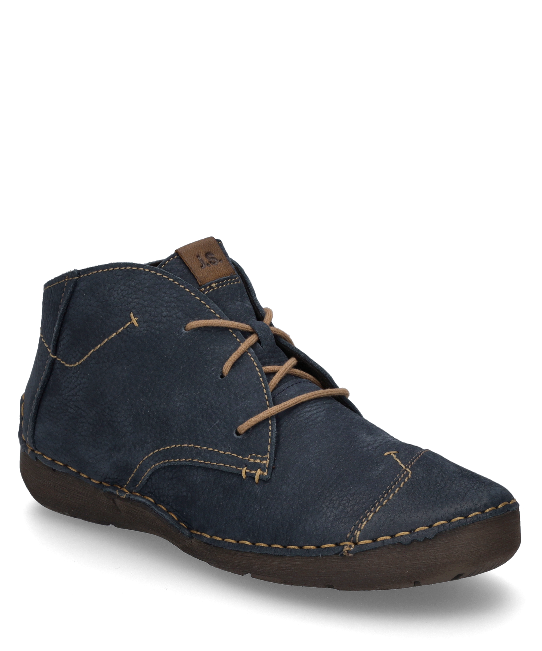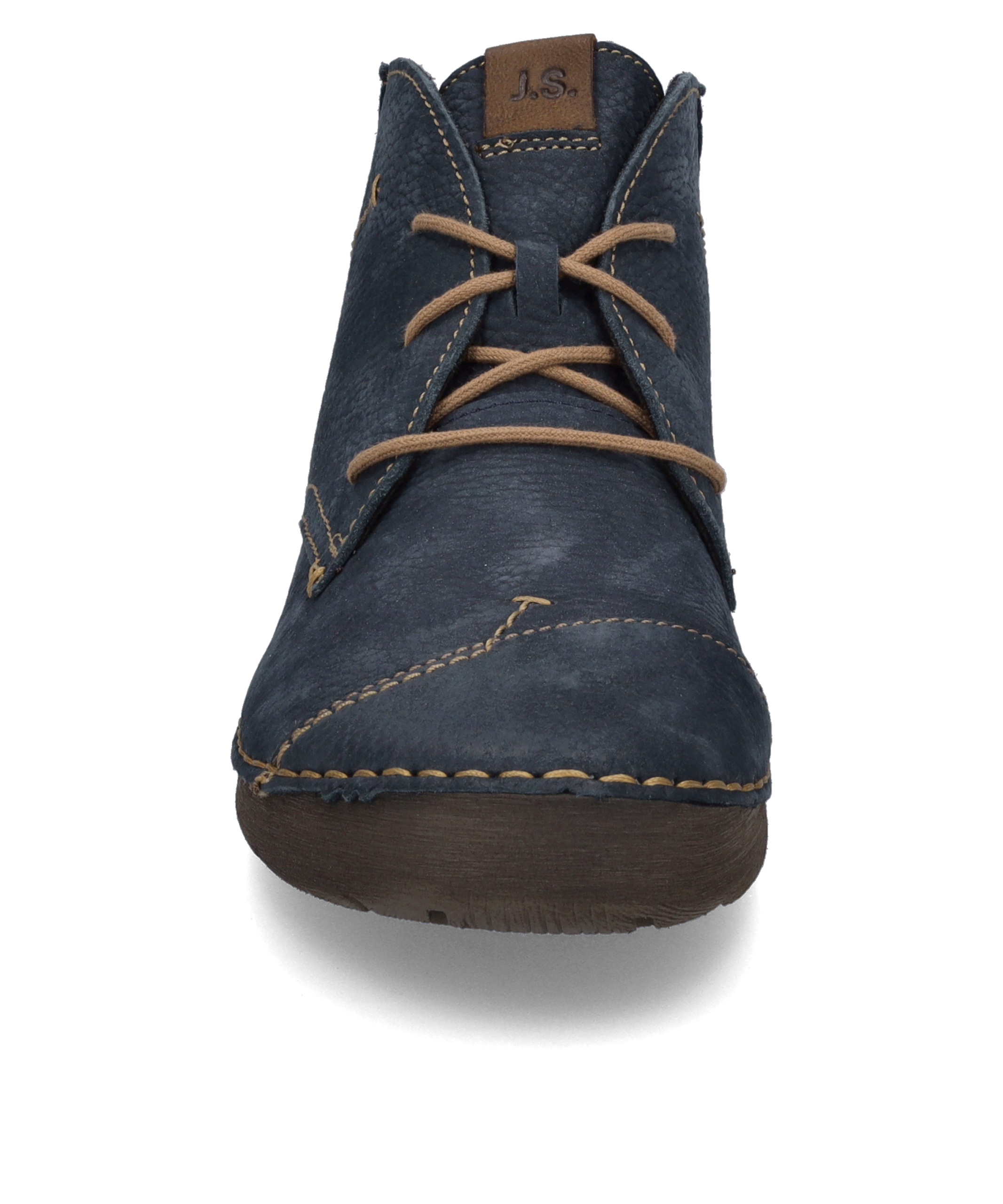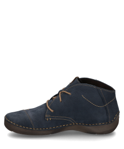 Fergey 18 in Blau – Damen Stiefelette Robuste Rubflex-Sohle für sicheren Halt Hochwertiges Leder für langlebigen Komfort Wechselfußbett für individuelle Anpassung Stilvolle Schnürung für perfekten Sitz Elegantes Design in modernem Blau Stil trifft Komfort Entdecke die perfekte Kombination aus Stil und Komfort mit unserer Fergey 18 Stiefelette. Diese elegante Stiefelette in modernem Blau ist speziell für Damen entworfen und bietet Dir nicht nur ein ansprechendes Design, sondern auch höchsten Tragekomfort. Hochwertiges Leder Gefertigt aus feinstem Rindsleder in Nubuk-Qualität, verspricht die Fergey 18 Langlebigkeit und ein angenehmes Tragegefühl. Die traditionelle Handnaht, ein Markenzeichen der deutschen Schuhindustrie, verleiht jedem Paar eine individuelle Note und zeugt von echter Handwerkskunst. Flexibilität und Halt Die robuste Rubflex-Sohle bietet Dir sicheren Halt auf jedem Untergrund. Dank ihrer Flexibilität und Biegsamkeit passt sie sich Deinen Bewegungen optimal an und sorgt für ein natürliches Laufgefühl. Individuelle Anpassung Mit dem praktischen Wechselfußbett kannst Du die Stiefelette individuell an Deine Bedürfnisse anpassen. Egal, ob Du zusätzliche Einlagen benötigst oder einfach nur den Komfort erhöhen möchtest, die Fergey 18 macht es möglich. Perfekter Sitz Die stilvolle Schnürung sorgt nicht nur für einen perfekten Sitz, sondern unterstreicht auch das elegante Design der Stiefelette. Lass Dich von der Kombination aus Funktionalität und Ästhetik begeistern.