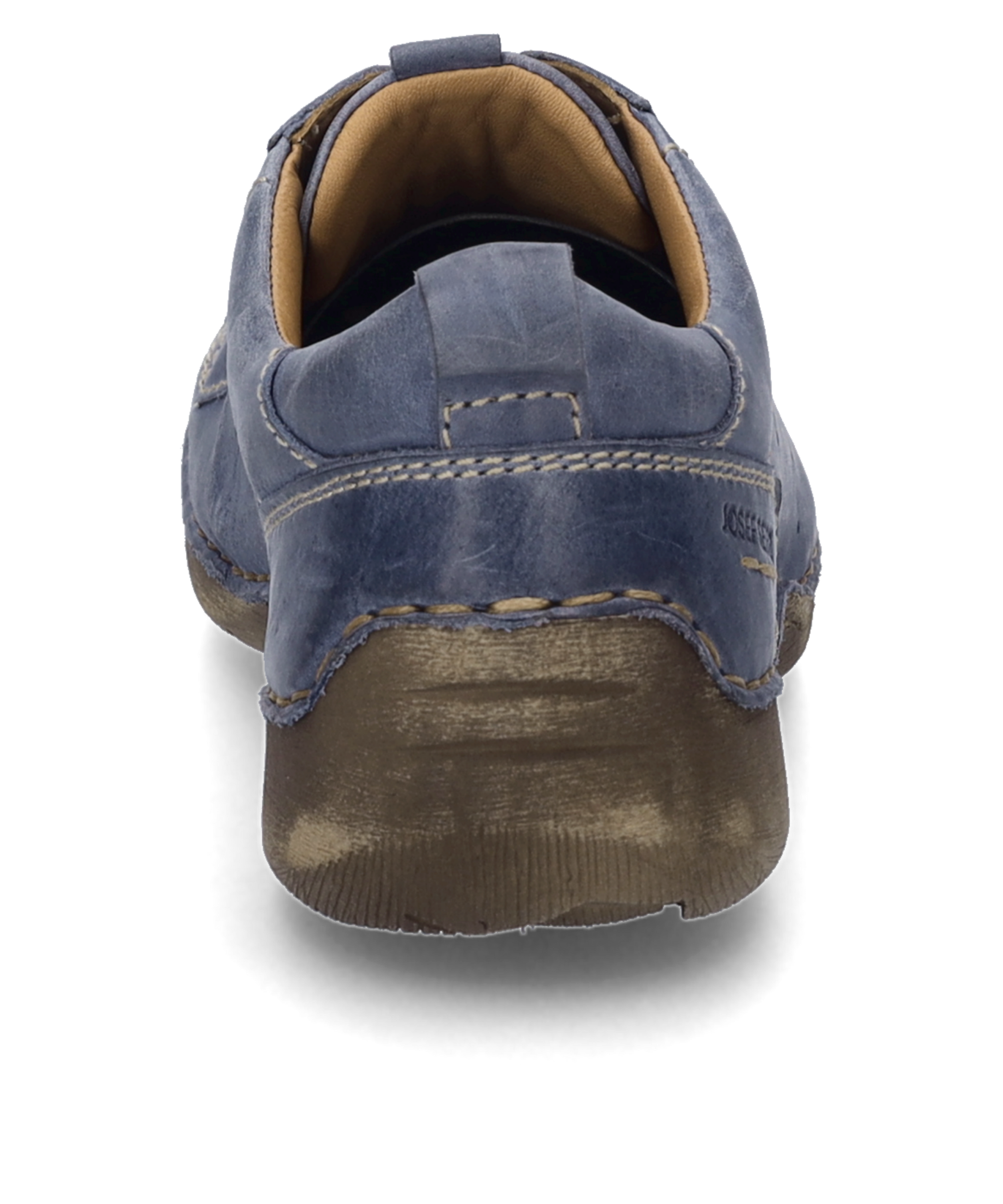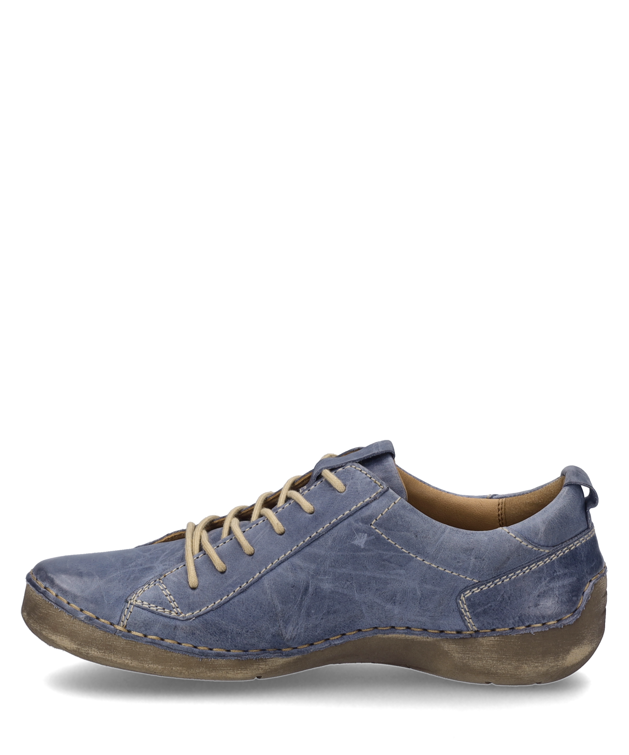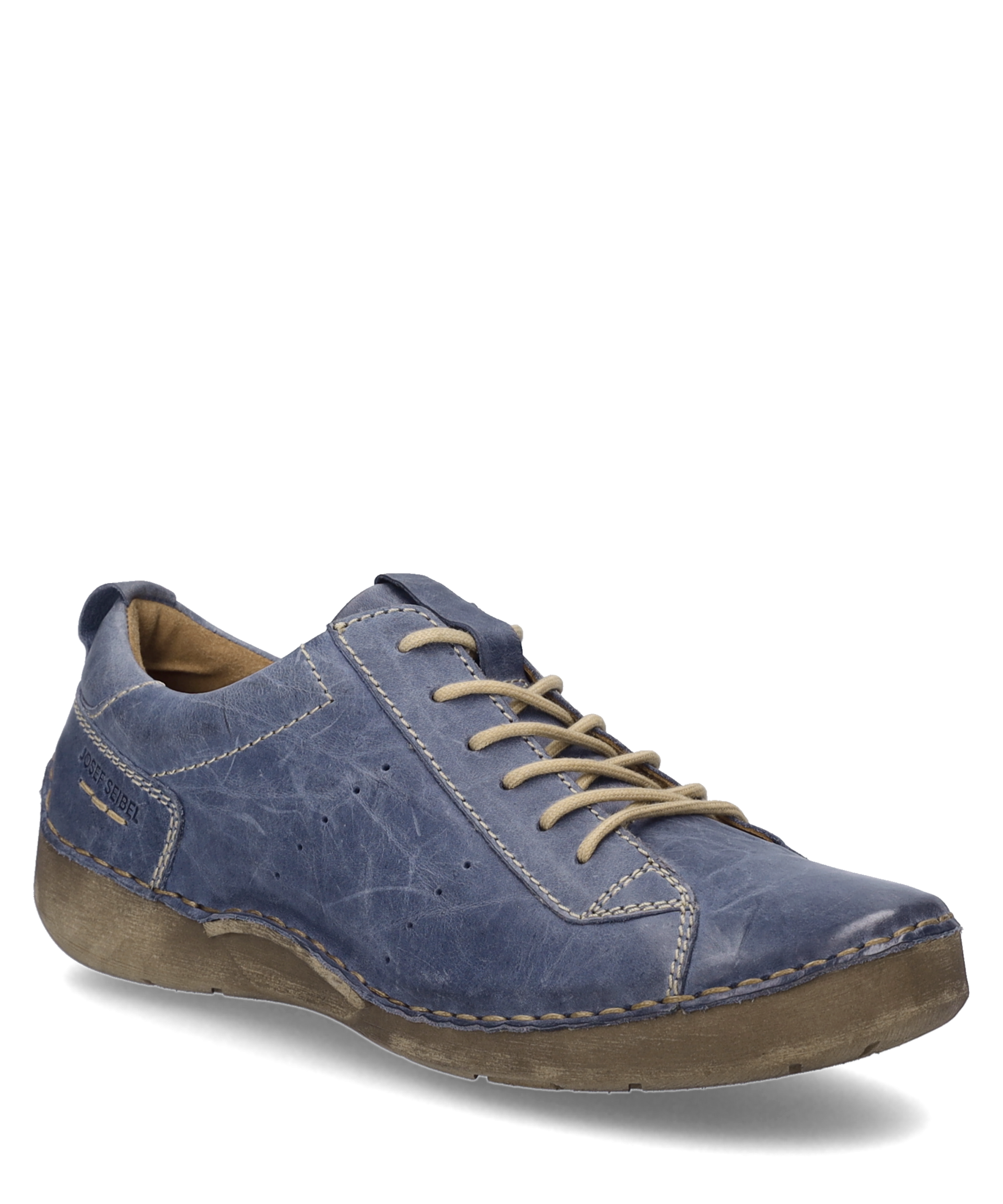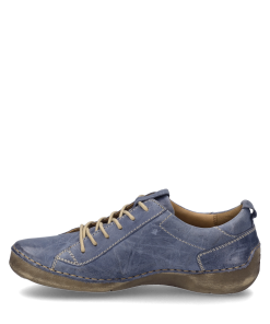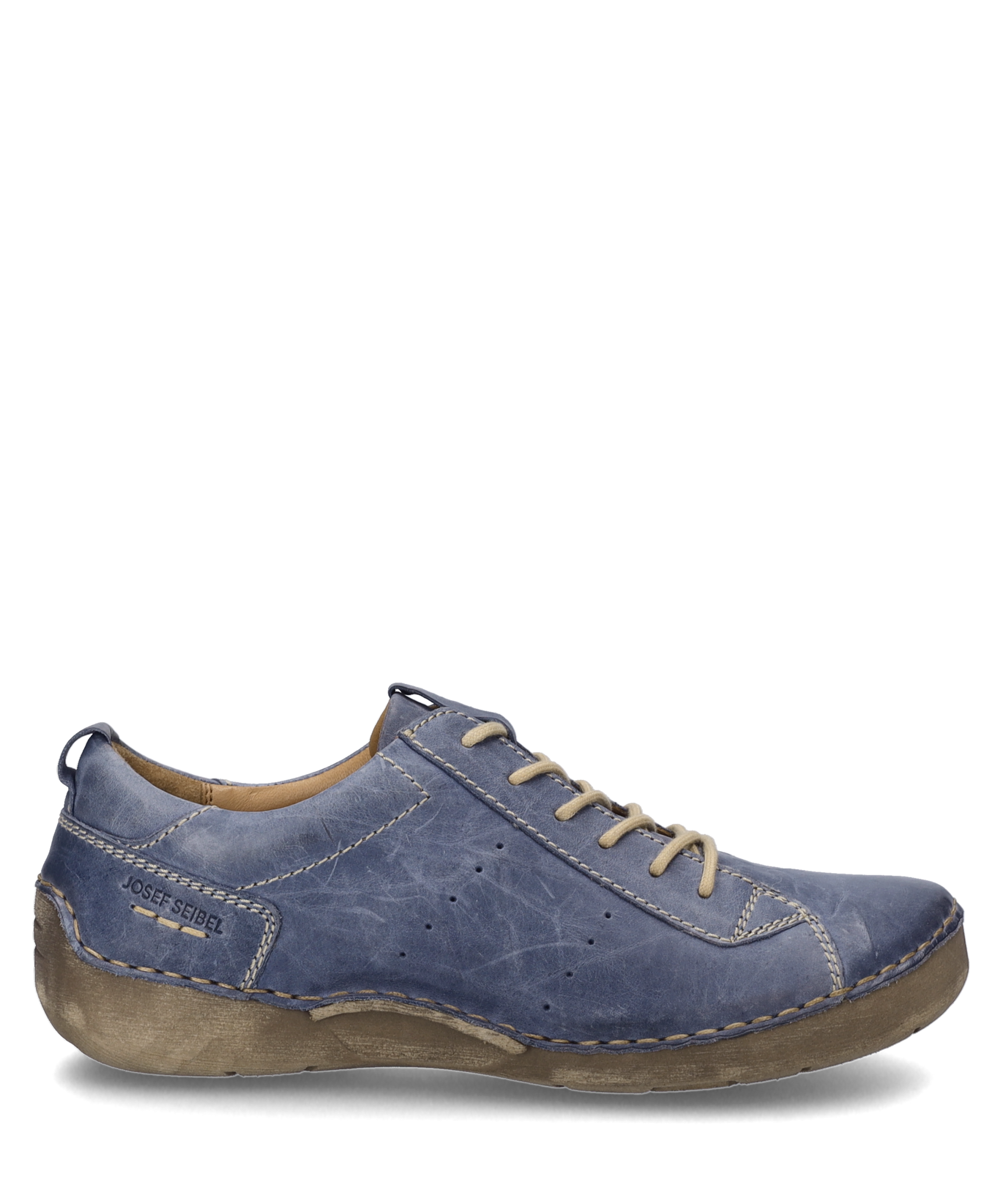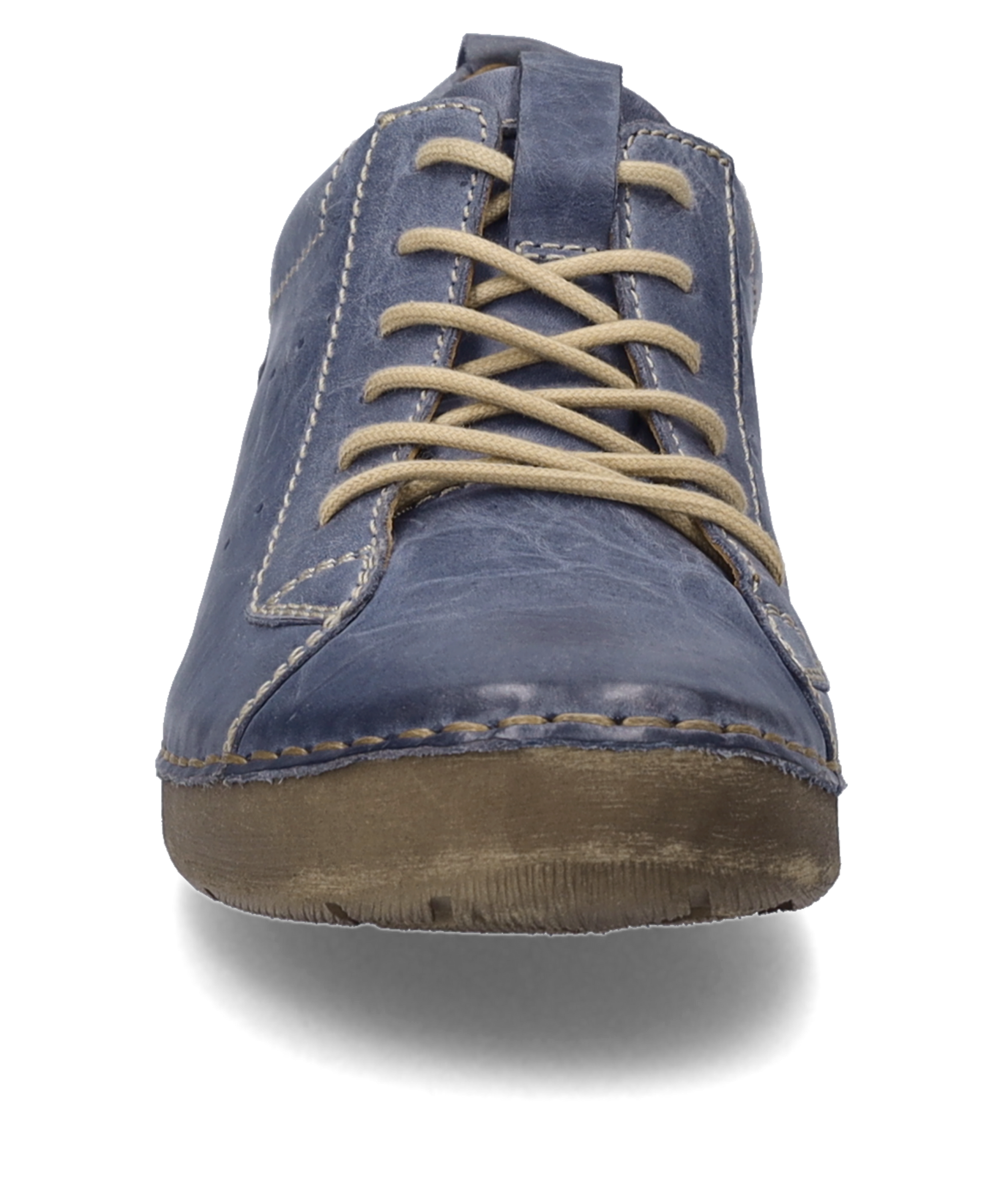 Fergey 56 in Dunkelblau – Damen Halbschuh Bequeme Rubflex-Sohle für optimalen Halt. Hochwertiges Kalbsleder für edlen Look. Wechselfußbett für individuellen Komfort. Schnürung für sicheren Sitz. Elegantes Design in Dunkelblau. Stilvoller Komfort Erlebe den unvergleichlichen Komfort des Fergey 56, der mit seiner bequemen Rubflex-Sohle für optimalen Halt sorgt. Diese flexible und langlebige Sohle passt sich perfekt Deinen Bewegungen an und bietet Dir den ganzen Tag über ein angenehmes Tragegefühl. Edles Leder Das hochwertige Kalbsleder verleiht dem Halbschuh nicht nur einen edlen Look, sondern auch eine besondere Langlebigkeit. Die glatte Oberfläche und die sichtbare Schnürung unterstreichen das elegante Design, während die kontrastierenden Nähte und das geprägte Logo an der Seite einen stilvollen Akzent setzen. Individueller Komfort Dank des Wechselfußbetts kannst Du den Schuh individuell an Deine Bedürfnisse anpassen. Egal ob Du zusätzliche Einlagen benötigst oder einfach nur den Komfort maximieren möchtest, der Fergey 56 bietet Dir die Flexibilität, die Du suchst. Tradition trifft Moderne Die traditionelle Handnaht, eine seltene und aufwändige Fertigungsart, verkörpert echte deutsche Industriekultur. Diese liebevolle Handarbeit macht jeden Schuh zu einem Unikat und verbindet Tradition mit modernem Design. Spirit of Nature Der Fergey 56 ist Teil der Spirit of Nature Kollektion von JOSEF SEIBEL. Diese Linie steht für Style und Komfort, charakterstarkes Design und die Verbindung von Tradition und Innovation. Lass Dich von der Qualität und dem einzigartigen Design inspirieren und genieße jeden Schritt in Deinem neuen Lieblingsschuh.