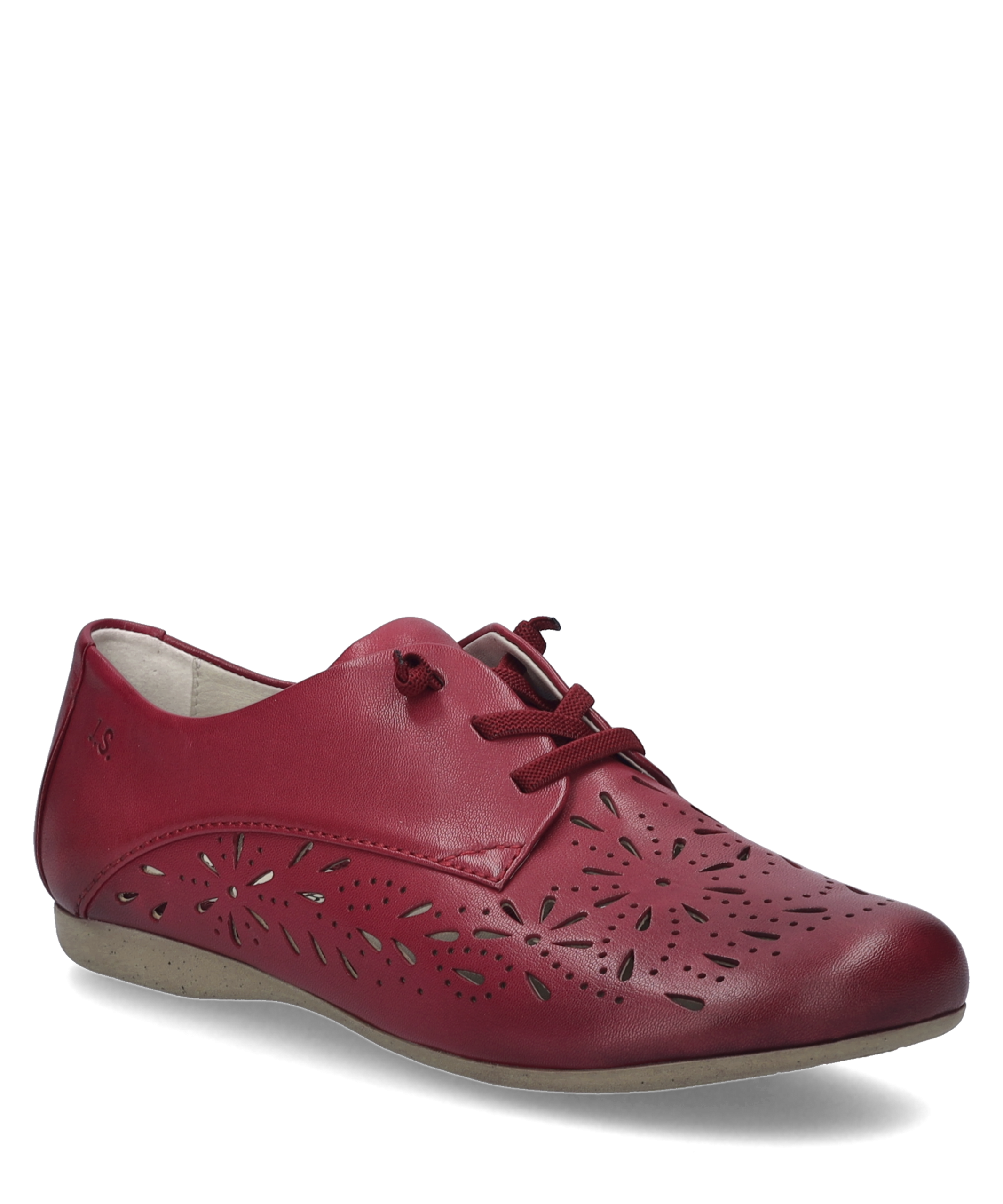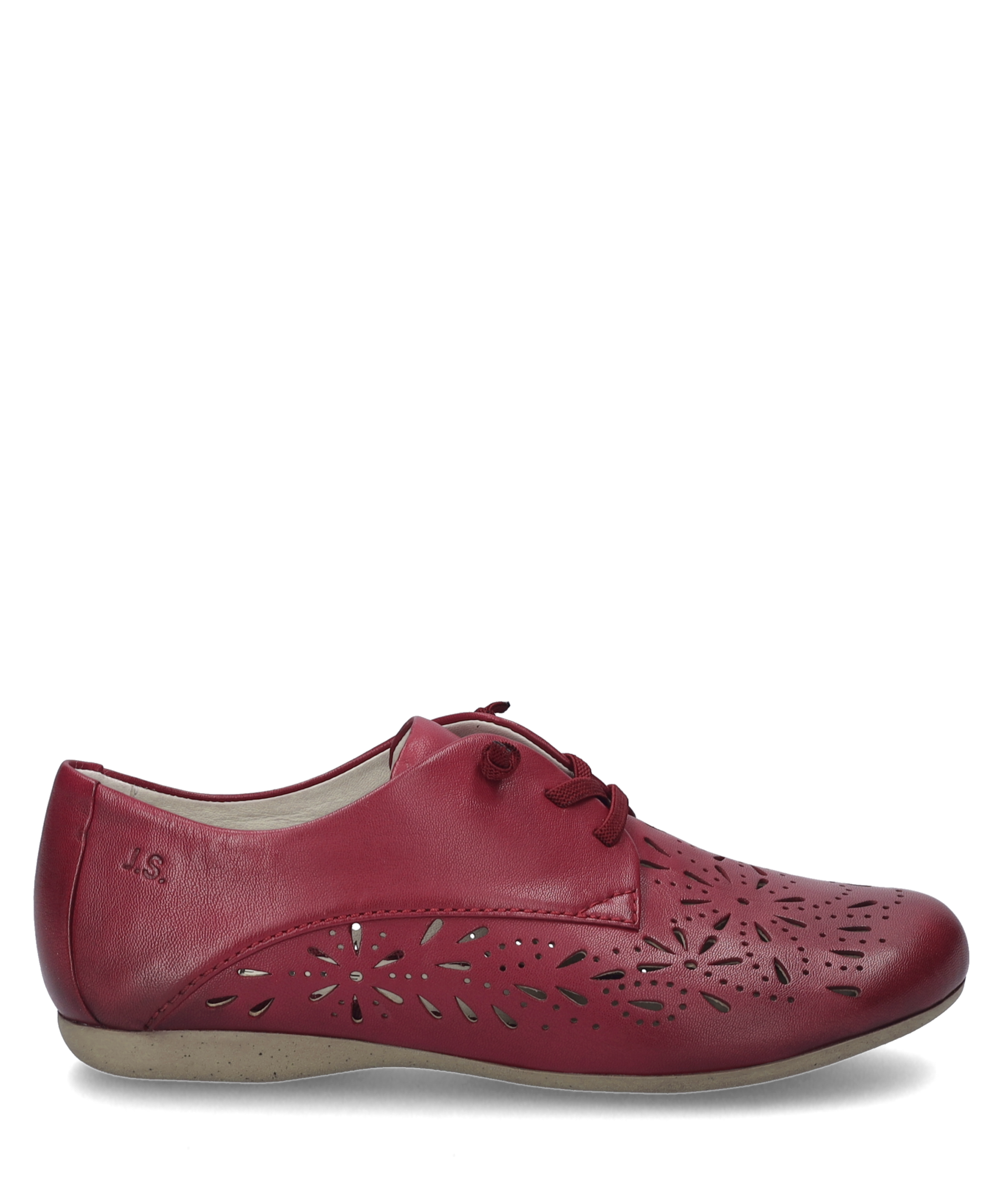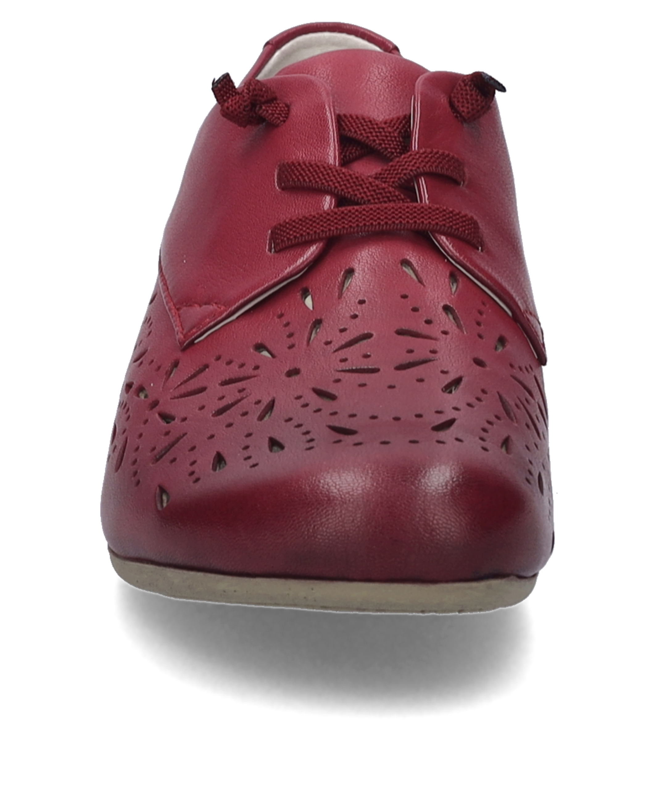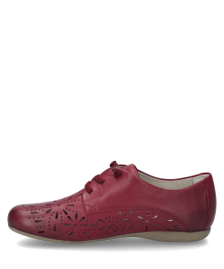 Fiona 83 in Berry – Damen Halbschuh Elegantes Design mit Blumenmuster Hochwertiges Leder für maximalen Komfort Dekorative Schnürung für sicheren Halt Bequeme TR-Sohle für langen Tragekomfort Trendige Farbe Berry für modischen Look Eleganz trifft Komfort Erlebe den perfekten Mix aus Stil und Bequemlichkeit mit unserem Fiona 83 Halbschuh in der trendigen Farbe Berry. Das elegante Design mit feinen Blumenmuster-Ausstanzungen verleiht diesem Schuh einen einzigartigen Look, der sich ideal für jede Gelegenheit eignet. Hochwertiges Leder Gefertigt aus edlem Nappa-Schafsleder, bietet dieser Schuh nicht nur eine ansprechende Optik, sondern auch höchsten Tragekomfort. Das weiche Leder passt sich optimal an deine Fußform an und sorgt für ein angenehmes Tragegefühl den ganzen Tag über. Sicherer Halt Die dekorative Schnürung ist nicht nur ein optisches Highlight, sondern garantiert auch einen sicheren Halt. So kannst du dich den ganzen Tag über auf deinen Schuh verlassen, egal ob im Büro oder in der Freizeit. Bequeme TR-Sohle Unsere TR-Sohle, bekannt für ihre gute Rutschfestigkeit und lange Haltbarkeit, bietet dir den Komfort, den du dir wünschst. Sie ist leichter als herkömmliche Gummisohlen und sorgt für ein unbeschwertes Laufgefühl. AGO-Fertigungsart Die innovative AGO-Fertigungsart macht diesen Schuh besonders formbeständig und langlebig. Durch die spezielle Verklebungstechnik wird eine perfekte Verbindung zwischen Obermaterial und Sohle gewährleistet, die für Stabilität und Flexibilität sorgt. Mit dem Fiona 83 von JOSEF SEIBEL entscheidest du dich für einen Schuh, der nicht nur modisch überzeugt, sondern auch durch Qualität und Komfort besticht. Lass dich von diesem einzigartigen Halbschuh begeistern und genieße jeden Schritt in vollen Zügen.