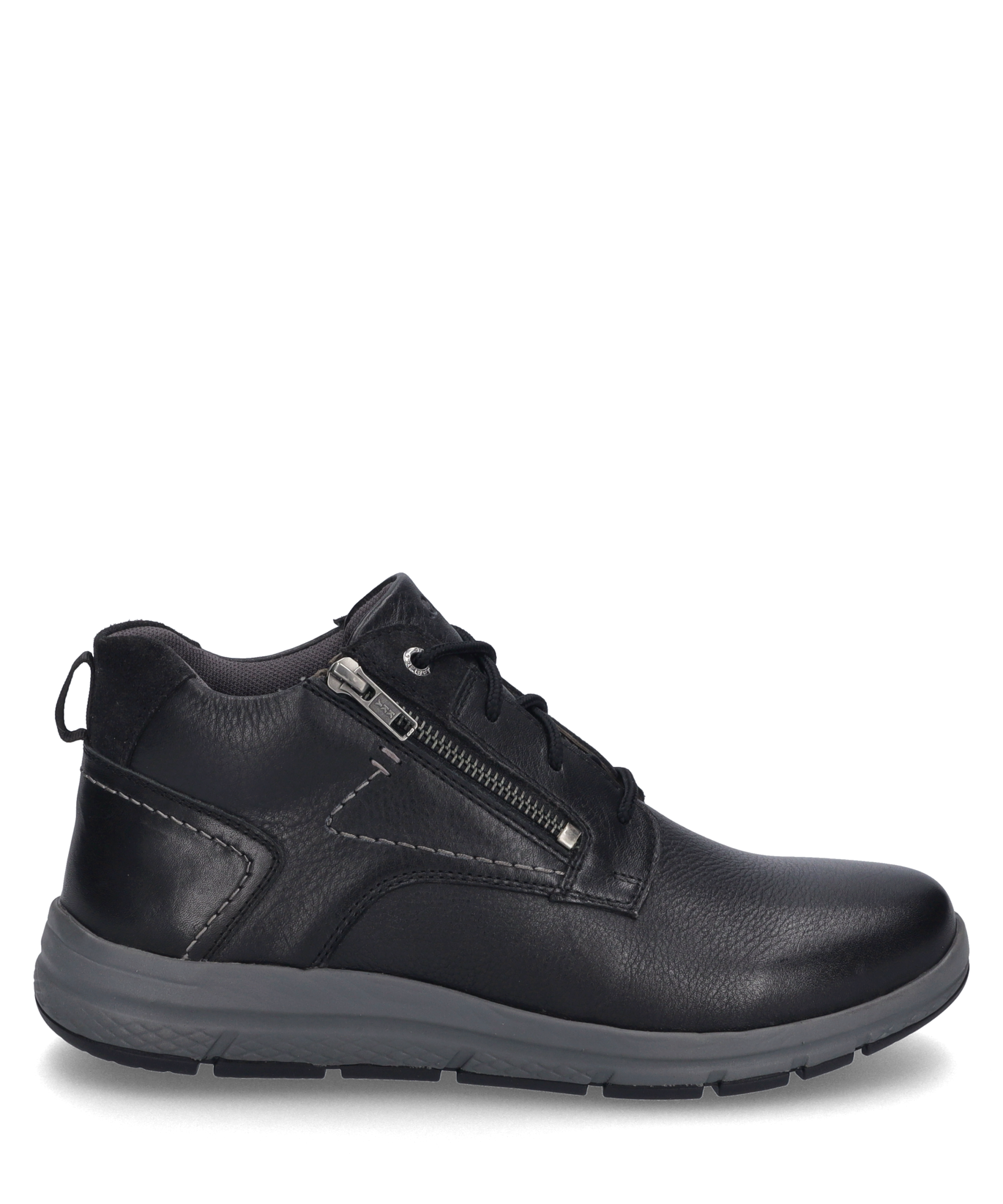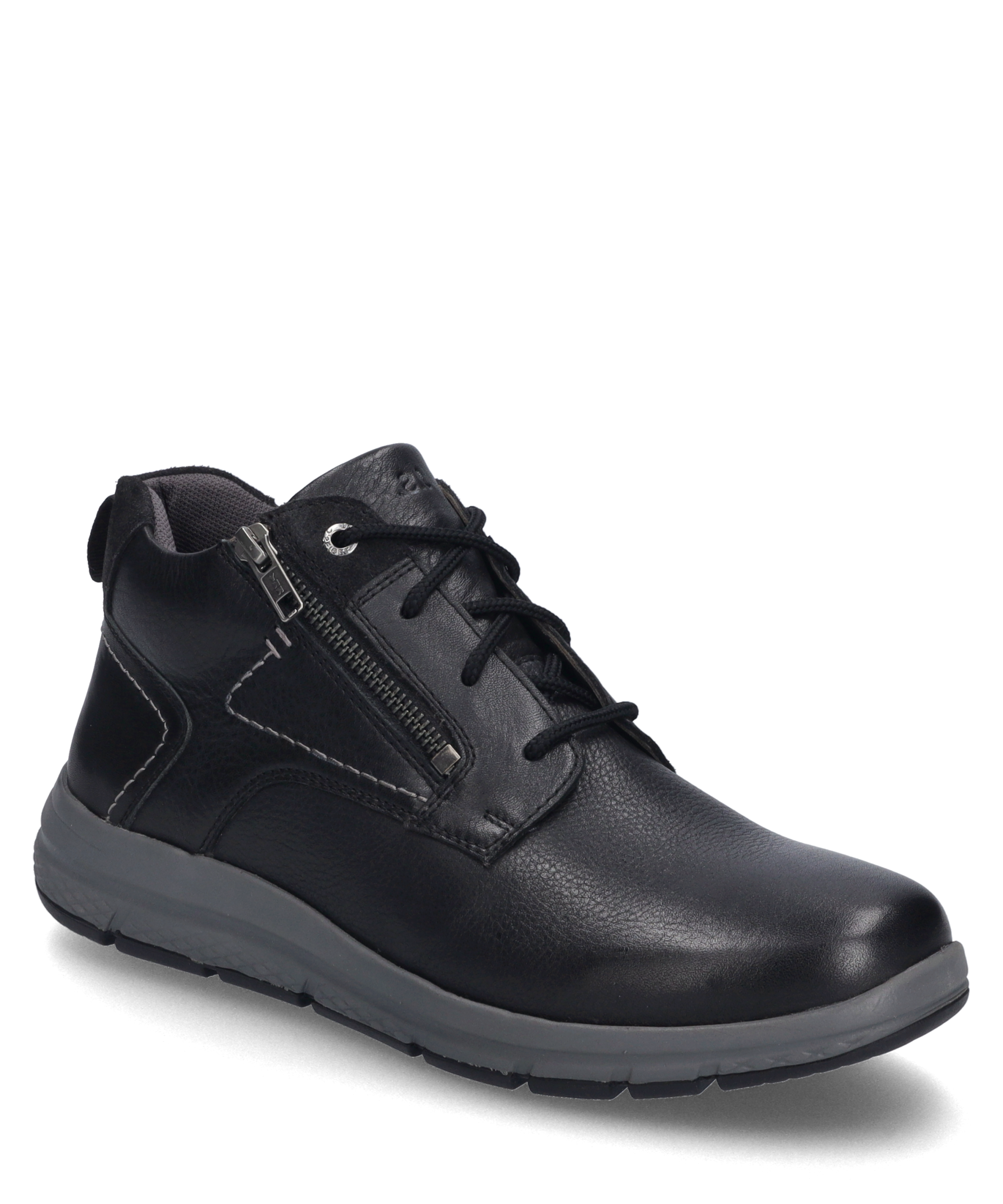 Giuseppe 03 in Schwarz – Herren Stiefelette Robuste EVA/TR-Sohle für Stabilität Hochwertiges Rindsleder für Langlebigkeit Wechselfußbett für individuellen Komfort Elegante Schnürung für sicheren Halt Zeitloses Design in klassischem Schwarz Stilvoller Auftritt Mit der Giuseppe 03 Stiefelette von JOSEF SEIBEL bist du immer stilvoll unterwegs. Das zeitlose Design in klassischem Schwarz passt zu jedem Outfit und Anlass. Die elegante Schnürung und der seitliche Reißverschluss sorgen für einen sicheren Halt und ein einfaches An- und Ausziehen. Komfort trifft Qualität Unsere Stiefelette besteht aus hochwertigem Rindsleder, das nicht nur langlebig, sondern auch besonders angenehm zu tragen ist. Das Wechselfußbett ermöglicht dir, den Schuh individuell an deine Bedürfnisse anzupassen, sodass du den ganzen Tag über höchsten Komfort genießen kannst. Robust und Sicher Die robuste EVA/TR-Sohle bietet dir Stabilität und Rutschfestigkeit auf jedem Untergrund. Dank der Strobel Machart wird die Stabilität zusätzlich gefördert, was die Stiefelette zu einem idealen Begleiter für den Alltag macht. Perfektion in jedem Detail JOSEF SEIBEL steht für modernen Komfort und Perfektion in Passform und Funktion. Die Giuseppe 03 Stiefelette vereint all diese Eigenschaften und bietet dir ein unvergleichliches Trageerlebnis. Dein neuer Lieblingsschuh Entdecke die Vielseitigkeit und den Komfort der Giuseppe 03 Stiefelette. Ob im Büro oder in der Freizeit, dieser Schuh wird schnell zu deinem neuen Lieblingsbegleiter.