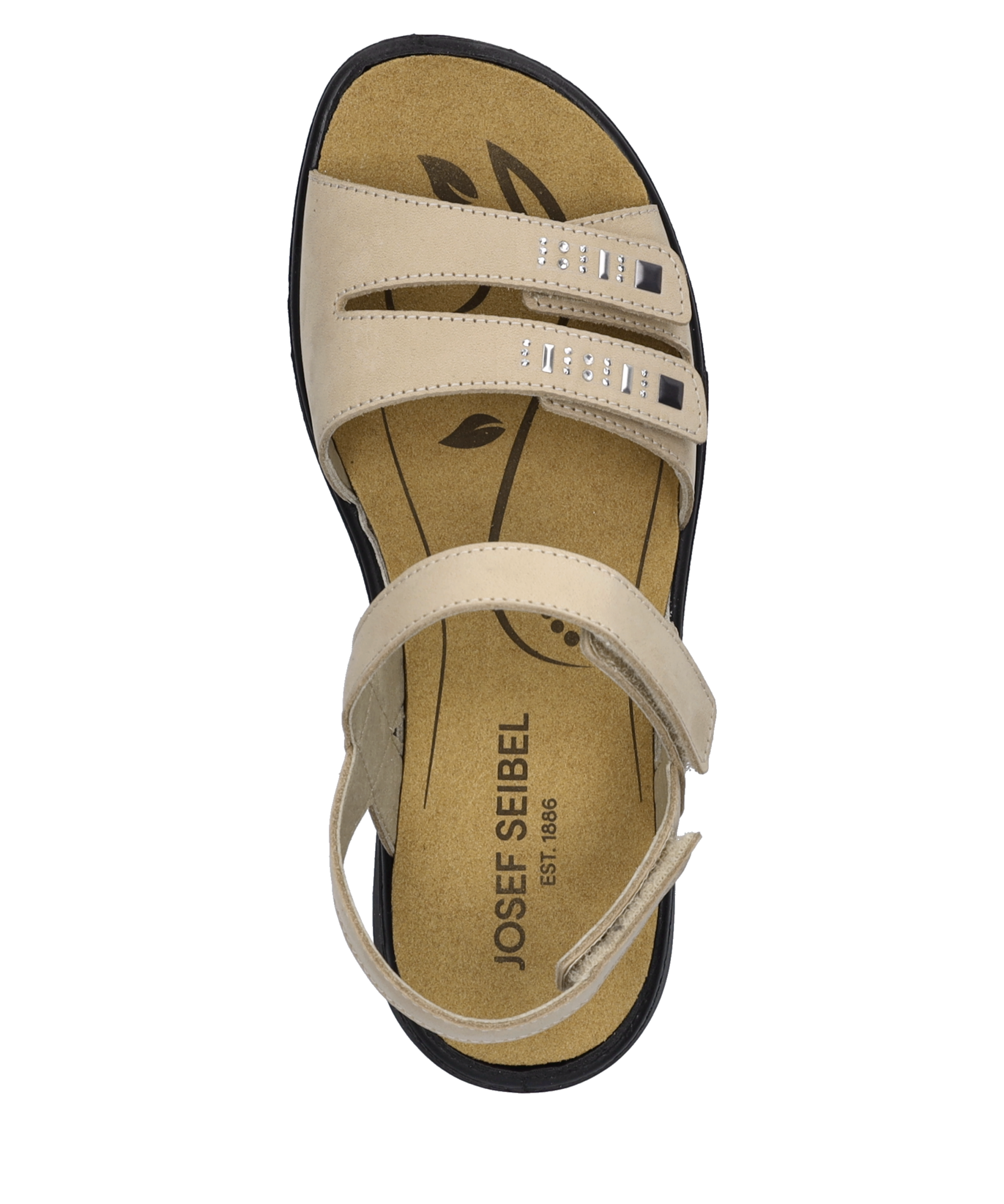 Ibiza 86 in Beige – Damen Sandale Ergonomische PU-Sohle für Komfort Weiches Rindsleder für angenehmes Tragen Verstellbarer Klettverschluss für perfekten Sitz Elegantes Nubuk-Design in Beige Wechselfußbett für individuelle Anpassung Komfort trifft Stil Entdecke die perfekte Kombination aus Komfort und Stil mit unserer Ibiza 86 Sandale. Das weiche Rindsleder umschmeichelt Deine Füße und sorgt für ein angenehmes Tragegefühl, während die ergonomische PU-Sohle jeden Schritt dämpft. Diese Sandale ist der ideale Begleiter für lange Sommertage. Perfekte Passform Dank des verstellbaren Klettverschlusses kannst Du die Sandale individuell an Deine Fußform anpassen. So sitzt sie immer perfekt und bietet Dir den Halt, den Du brauchst. Die Wechselfußbett-Funktion ermöglicht es Dir, die Sandale nach Deinen Bedürfnissen zu gestalten. Eleganz in Beige Das elegante Nubuk-Design in Beige verleiht der Sandale einen modernen Look, der sich vielseitig kombinieren lässt. Ob zum Kleid oder zur Jeans, die Ibiza 86 passt sich Deinem Stil an und setzt modische Akzente. Hochwertige Materialien Wir bei JOSEF SEIBEL legen großen Wert auf die Qualität unserer Materialien. Die Sandale besteht aus hochwertigem Rindsleder und einer leichten PU-Sohle, die für ihre hervorragenden Dämpfungseigenschaften bekannt ist. Diese Kombination garantiert Langlebigkeit und Komfort. Innovative Fertigung Die Fertigung in Strobel-Machart sorgt für zusätzliche Stabilität und Flexibilität. Diese Technik verbindet den Schaft mit der Außensohle und fördert die Stabilität des Schuhs. So kannst Du Dich auf die Qualität und den Komfort verlassen, den Du von JOSEF SEIBEL erwartest.