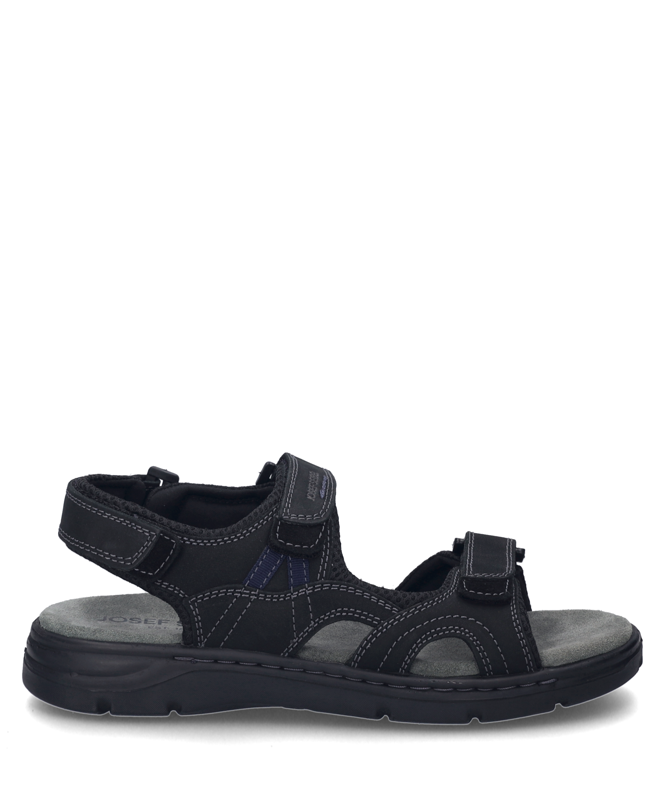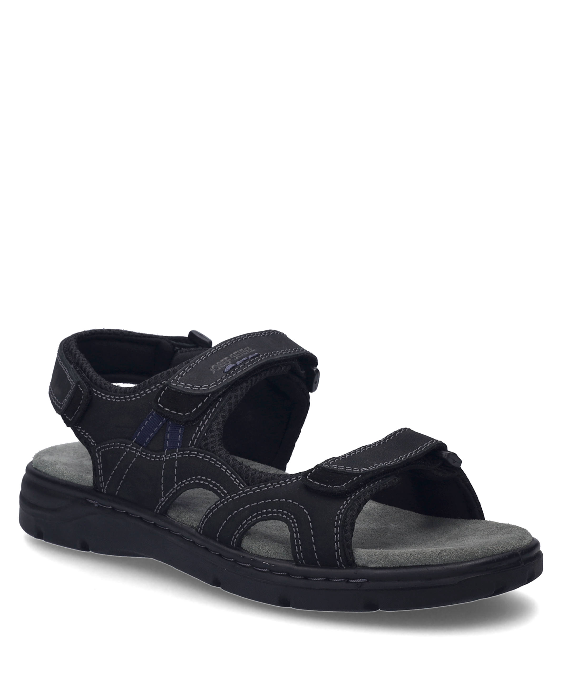 Marlon 06 in Schwarz – Herren Sandale Kalbsleder für langlebigen Komfort Praktischer Klettverschluss für einfaches Anziehen PU-Sohle für optimalen Halt Wechselfußbett für individuelle Anpassung Sportlicher Look in elegantem Schwarz Eleganz trifft Komfort Mit der Marlon 06 Sandale von JOSEF SEIBEL erlebst Du eine perfekte Kombination aus Stil und Bequemlichkeit. Das hochwertige Kalbsleder sorgt für einen langlebigen Tragekomfort, der Dich den ganzen Tag begleitet. Die elegante schwarze Farbe verleiht der Sandale einen sportlichen Look, der sich vielseitig kombinieren lässt. Praktische Details Der praktische Klettverschluss ermöglicht ein einfaches An- und Ausziehen, sodass Du schnell und unkompliziert startklar bist. Dank des Wechselfußbetts kannst Du die Sandale individuell an Deine Bedürfnisse anpassen und so für optimalen Komfort sorgen. Leicht und Flexibel Die PU-Sohle bietet nicht nur optimalen Halt, sondern ist auch besonders leicht und flexibel. Diese Eigenschaften machen die Sandale zu einem idealen Begleiter für den Alltag. Die Direktbesohlung sorgt dafür, dass die Sohle direkt mit dem Obermaterial verbunden ist, was die Flexibilität und Leichtigkeit zusätzlich unterstützt. Hochwertige Materialien Das Obermaterial aus einer Kombination von Leder und Textil bietet nicht nur eine ansprechende Optik, sondern auch eine hohe Strapazierfähigkeit. Die sorgfältige Verarbeitung der Nähte unterstreicht die Qualität und Langlebigkeit der Sandale. Perfektion in Passform und Funktion JOSEF SEIBEL steht für modernen Komfort und Perfektion in Passform und Funktion. Mit der Marlon 06 Sandale erhältst Du ein Produkt, das diesen Ansprüchen gerecht wird und Dir ein unvergleichliches Trageerlebnis bietet.