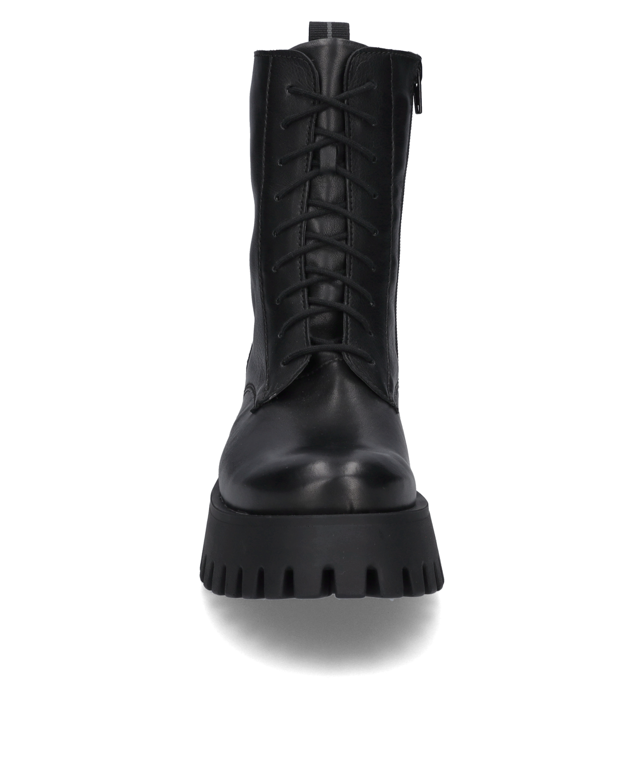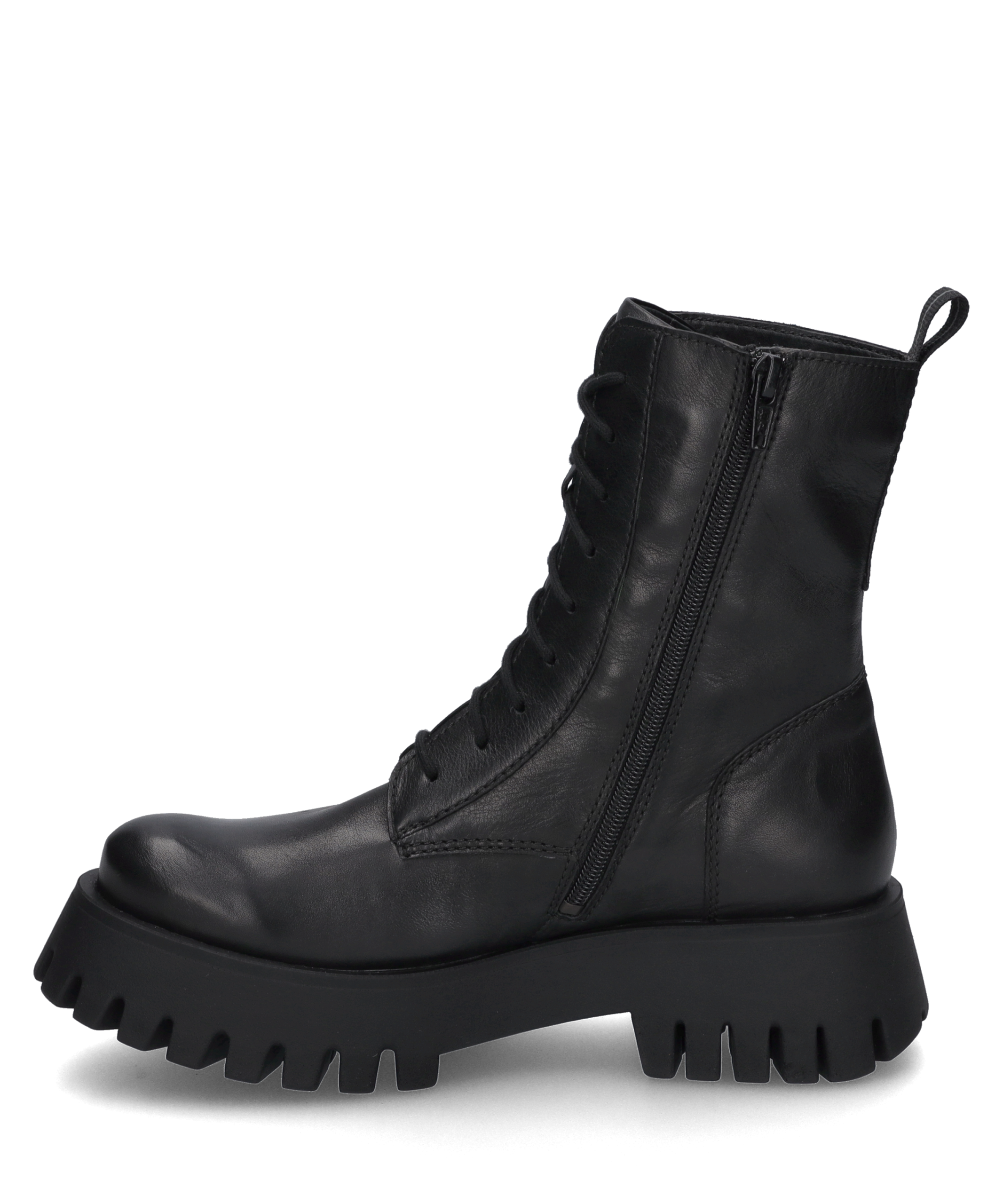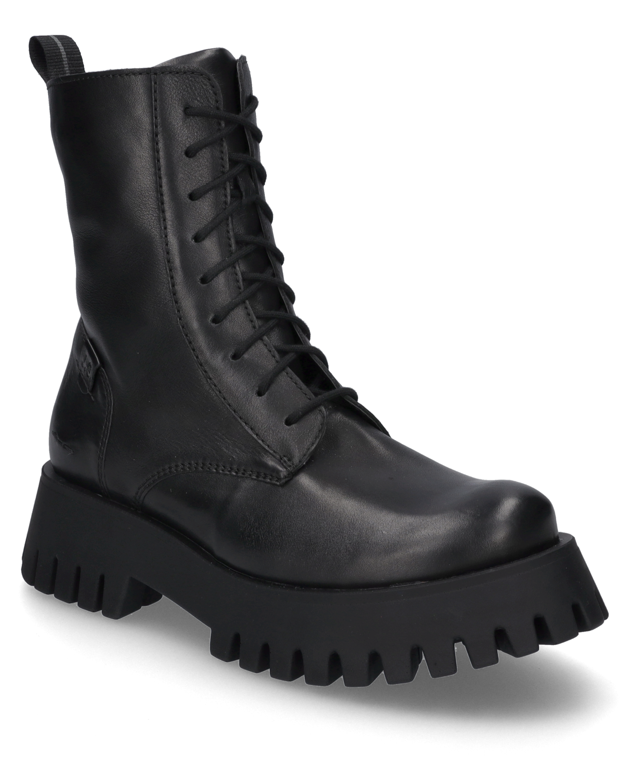 Mavie 06 in Schwarz – Damen Stiefel Robuste PU-Sohle für optimalen Halt Hochwertiges Rindsleder für Langlebigkeit Warme Fütterung für kalte Tage Schnürung für individuelle Passform Moderner Look in elegantem Schwarz Stilvoll und Robust Entdecke den Mavie 06, einen Stiefel, der Stil und Funktionalität perfekt vereint. Gefertigt aus hochwertigem Rindsleder, bietet er nicht nur eine elegante Optik, sondern auch eine beeindruckende Langlebigkeit. Die robuste PU-Sohle sorgt für optimalen Halt auf jedem Untergrund, während die warme Fütterung deine Füße auch an kalten Tagen angenehm warm hält. Individuelle Passform Mit der praktischen Schnürung kannst du die Passform des Stiefels ganz nach deinen Wünschen anpassen. Der zusätzliche Reißverschluss erleichtert das An- und Ausziehen, sodass du schnell und unkompliziert startklar bist. Leicht und Komfortabel Dank der leichten Polyurethan-Sohle genießt du den Komfort eines weichen Auftritts, ohne auf Stabilität verzichten zu müssen. Diese Sohle bietet ähnliche Eigenschaften wie Gummi, ist jedoch deutlich leichter, was den Tragekomfort erheblich steigert. AGO-Fertigung Die AGO-Fertigungsmethode steht für Another Great Opportunity und garantiert eine formbeständige und langlebige Verbindung von Schaft und Sohle. Diese moderne Machart sorgt dafür, dass dein Stiefel auch bei intensiver Nutzung seine Form behält. Eleganz in Schwarz Der Mavie 06 besticht durch seinen modernen Look in elegantem Schwarz. Dieser Stiefel ist nicht nur ein modisches Statement, sondern auch ein verlässlicher Begleiter für den Alltag. Ob in der Stadt oder auf dem Land, mit diesem Stiefel bist du immer stilvoll unterwegs.