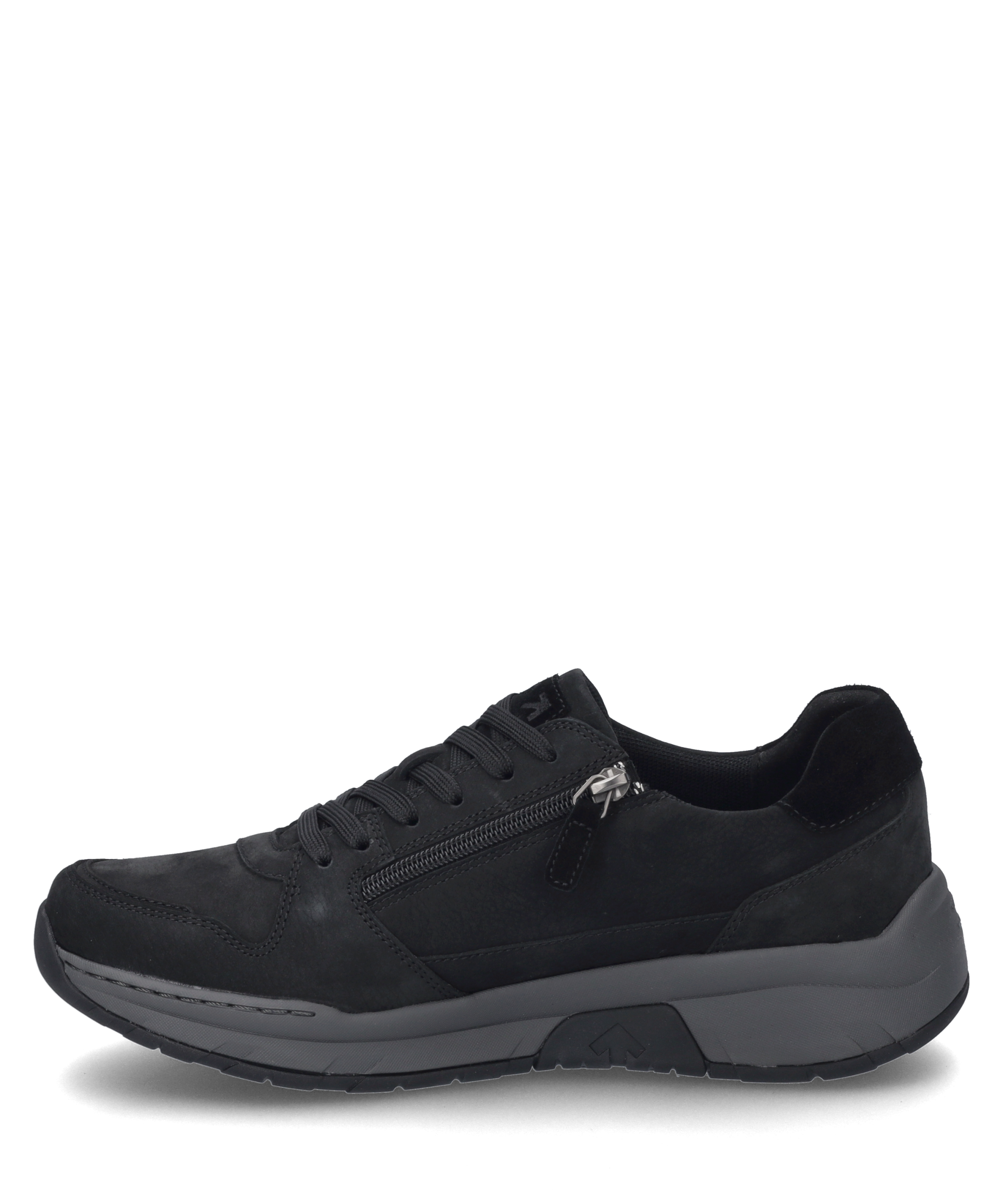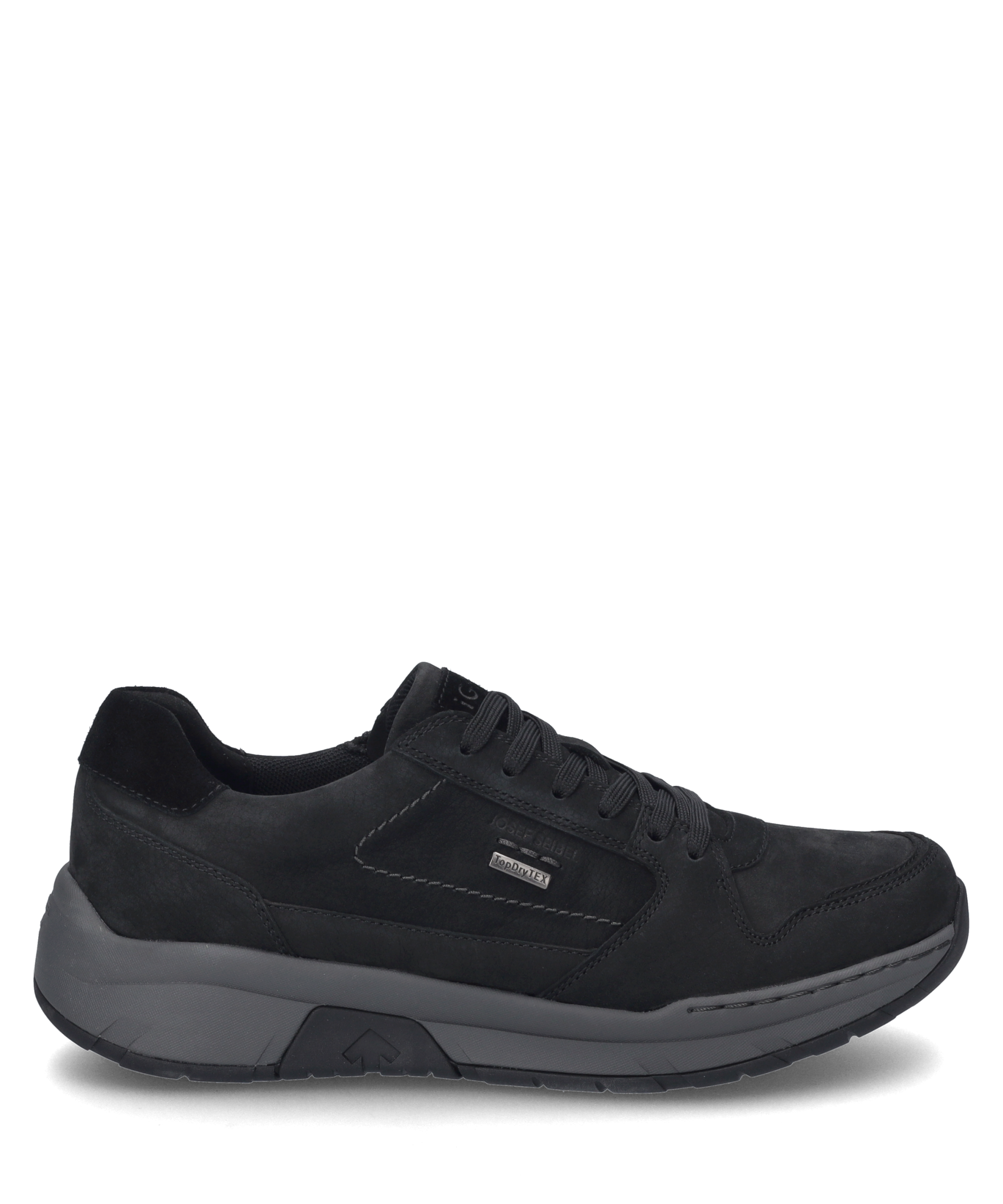 Mitchell 50 in Schwarz – Herren Sneaker Robuste EVA/Gummi-Sohle für Stabilität Hochwertiges Leder für langlebigen Komfort Wasserabweisend für trockene Füße Schnürung für sicheren Halt Modernes Design in elegantem Schwarz Stilvoll und Funktional Entdecke den Mitchell 50, einen Sneaker, der Stil und Funktionalität perfekt vereint. In elegantem Schwarz gehalten, passt er zu jedem Outfit und Anlass. Die hochwertige Verarbeitung aus Nubuk-Rindsleder sorgt für einen langlebigen und komfortablen Tragekomfort. Komfort der Extraklasse Mit der Bequemschuhweite H bietet dieser Sneaker optimalen Komfort für breitere Füße. Die innovative MultiFit-Technologie ermöglicht es, zwei Weiten in einem Schuh zu vereinen, während das weiche, unterstützende Wechselfußbett für ein angenehmes Laufgefühl sorgt. Robust und Sicher Die robuste EVA/Gummi-Sohle bietet Stabilität und Rutschfestigkeit auf jedem Untergrund. Dank der Strobel Machart wird die Stabilität zusätzlich gefördert, was diesen Sneaker zu einem idealen Begleiter für den Alltag macht. Wetterfest und Praktisch Bleibe trocken und komfortabel, egal bei welchem Wetter. Der Mitchell 50 ist wasserabweisend und schützt deine Füße vor Nässe. Die praktische Schnürung sorgt zudem für einen sicheren Halt. Ein Schuh für alle Fälle Ob für den täglichen Gebrauch oder besondere Anlässe, dieser Sneaker ist die perfekte Wahl. Er vereint modernes Design mit technischer Raffinesse und bietet dir maximalen Fuß- und Gehkomfort.