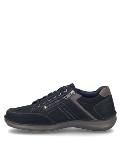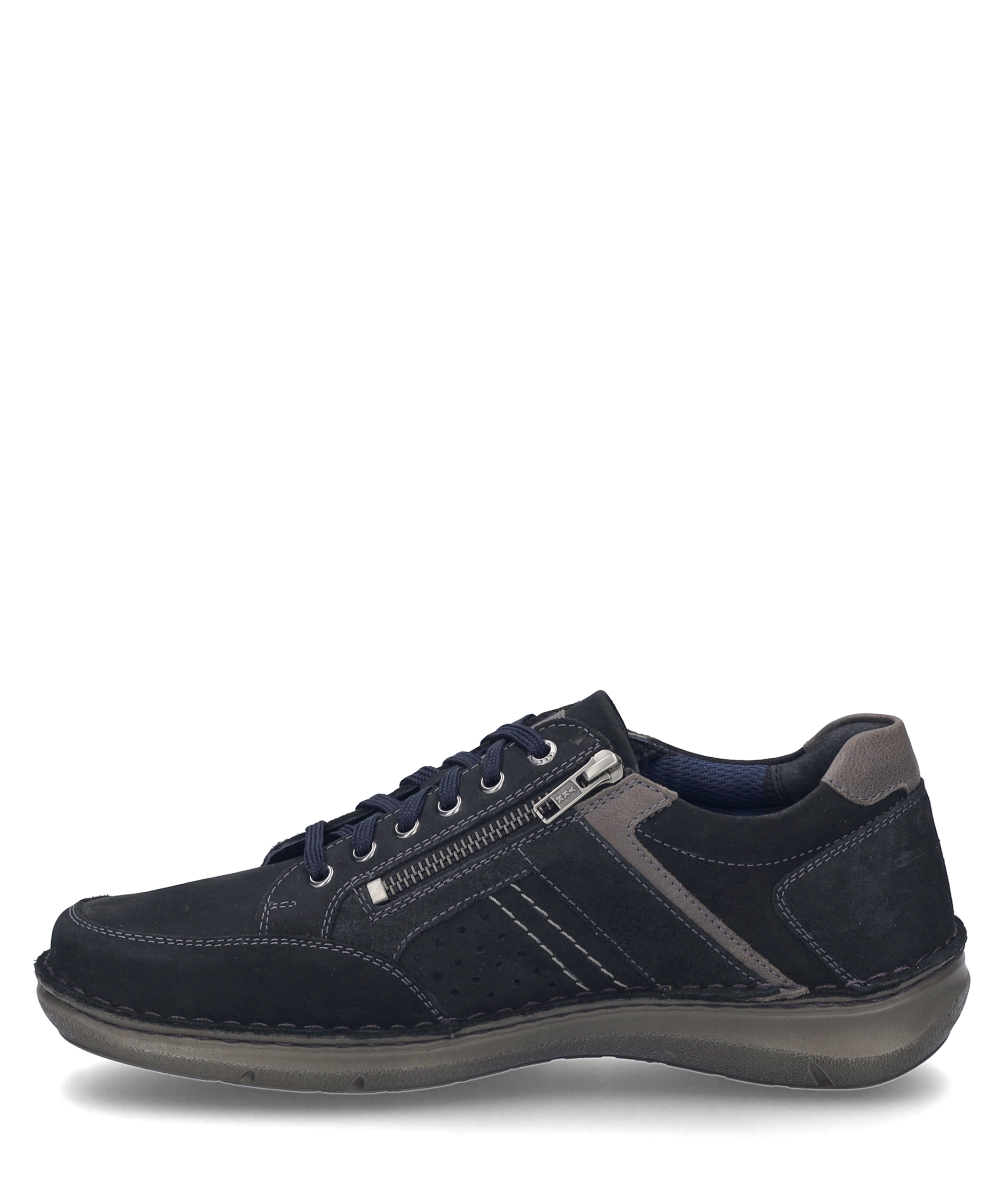 New Anvers 87 in Dunkelblau-Kombi – Herren Halbschuh Hochwertiges Rindsleder für langlebigen Komfort Robuste PU-Sohle für sicheren Halt Wechselfußbett für individuellen Tragekomfort Schnürung und Reißverschluss für Flexibilität Modernes Design in Dunkelblau-Kombi Stilvoller Komfort Erlebe den New Anvers 87, der mit seinem hochwertigen Rindsleder und der traditionellen Handnahtfertigung besticht. Diese Kombination sorgt nicht nur für eine ansprechende Optik, sondern auch für eine lange Lebensdauer und hohen Tragekomfort. Die dezente Nahtführung und das moderne Design in Dunkelblau-Kombi machen diesen Halbschuh zu einem echten Hingucker. Perfekte Passform Dank der Bequemschuhweite K ist der New Anvers 87 ideal für besonders breite oder kräftige Füße geeignet. Die Kombination aus Schnürung und Reißverschluss ermöglicht eine flexible Anpassung und sorgt für einen sicheren Sitz. So kannst du dich den ganzen Tag über wohlfühlen. Innovative Sohle Die PU-Sohle des New Anvers 87 bietet dir nicht nur hervorragende Dämpfungseigenschaften, sondern auch einen sicheren Halt auf verschiedensten Untergründen. Das leichte Material sorgt dafür, dass du den Schuh kaum spürst, während du unterwegs bist. Individueller Komfort Mit dem Wechselfußbett kannst du den Tragekomfort ganz nach deinen Bedürfnissen anpassen. Ob du eigene Einlagen verwenden möchtest oder einfach nur die Polsterung variieren willst, dieser Schuh bietet dir die Flexibilität, die du brauchst. Tradition trifft Moderne Der New Anvers 87 vereint traditionelle Handwerkskunst mit modernen Designelementen. Die Handnaht ist ein Zeichen echter deutscher Industriekultur und verleiht dem Schuh eine besondere Note. Gleichzeitig sorgt das moderne Design dafür, dass du stets stilvoll unterwegs bist.