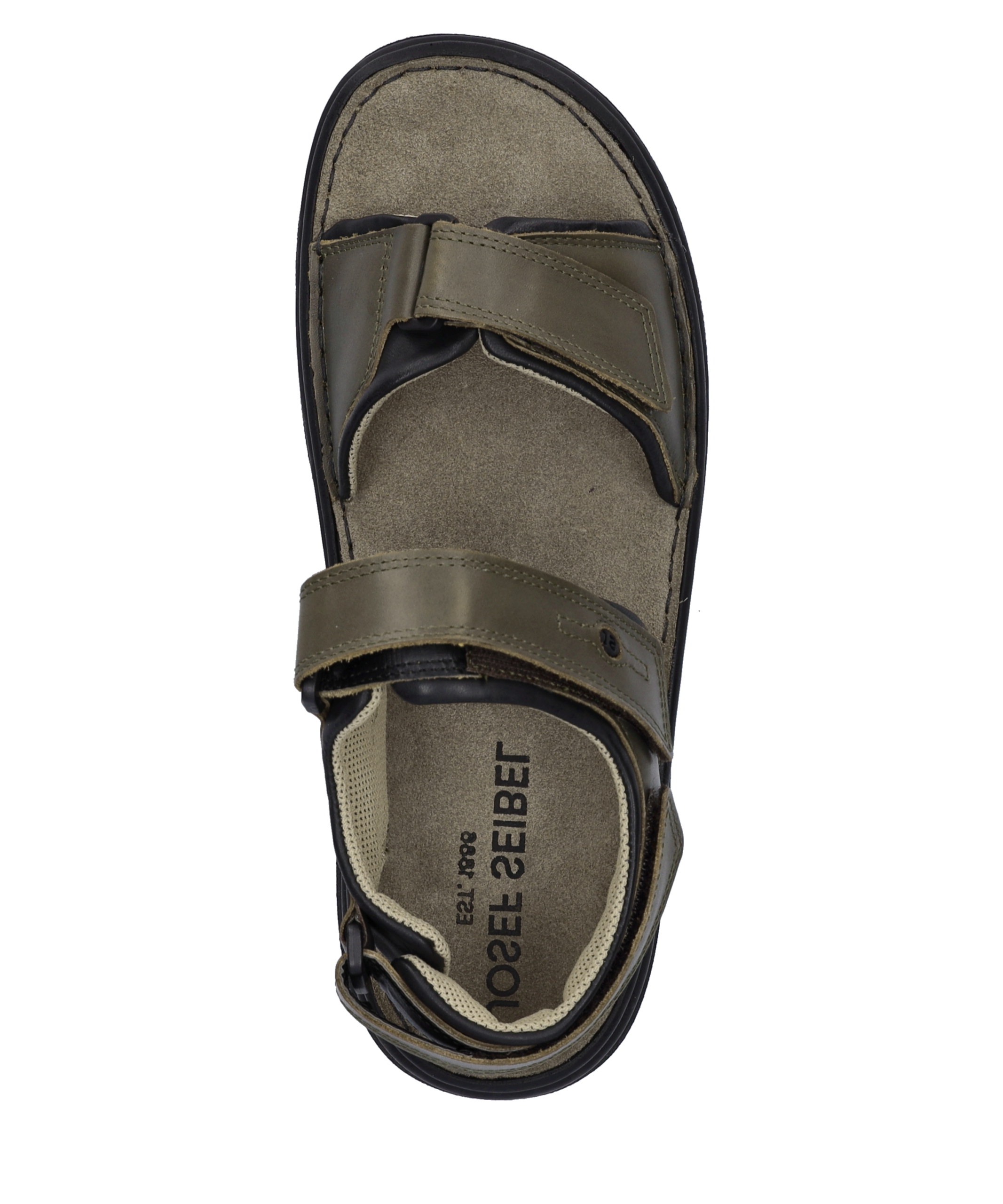Rafe in Moos – Herren Sandale Robustes Rindsleder für Langlebigkeit Bequemer Klettverschluss für einfache Anpassung Gepolsterte PU-Sohle für Komfort Moosgrün für stilvolles Design Nappa-Finish für edlen Look Stilvoll und Robust Entdecke die perfekte Kombination aus Stil und Funktionalität mit unserer Rafe Sandale in der eleganten Farbe Moos. Gefertigt aus hochwertigem Rindsleder, bietet sie nicht nur einen edlen Look, sondern auch eine beeindruckende Langlebigkeit. Das Nappa-Finish verleiht der Sandale einen zusätzlichen Hauch von Eleganz, der Dich bei jedem Schritt begleitet. Komfort auf jedem Schritt Mit der gepolsterten PU-Sohle erlebst Du unvergleichlichen Komfort. Die Sohle aus Polyurethan ist nicht nur leicht, sondern bietet auch hervorragende Dämpfungseigenschaften, die Deine Füße den ganzen Tag über unterstützen. Egal, ob Du durch die Stadt schlenderst oder einen Spaziergang im Park machst, Deine Füße werden es Dir danken. Einfache Anpassung Der praktische Klettverschluss ermöglicht eine individuelle Anpassung und sorgt dafür, dass die Sandale perfekt sitzt. Kein lästiges Schnüren oder Binden – einfach anpassen und losgehen. Diese Funktion macht die Rafe Sandale zu einem idealen Begleiter für den Alltag. Tradition trifft Moderne Unsere Sandale wird in traditioneller Handnaht gefertigt, ein Verfahren, das für seine hohe Qualität und Langlebigkeit bekannt ist. Diese liebevolle Handarbeit spiegelt die deutsche Industriekultur wider und verbindet traditionelle Techniken mit modernem Komfort. Perfektion in jedem Detail Die Rafe Sandale ist Teil der renommierten Josef Seibel Kollektion, die für modernen Komfort und Perfektion in Passform und Funktion steht. Jedes Detail ist sorgfältig durchdacht, um Dir das bestmögliche Trageerlebnis zu bieten. Lass Dich von der Qualität und dem Design überzeugen und erlebe, wie sich Tradition und Innovation vereinen.