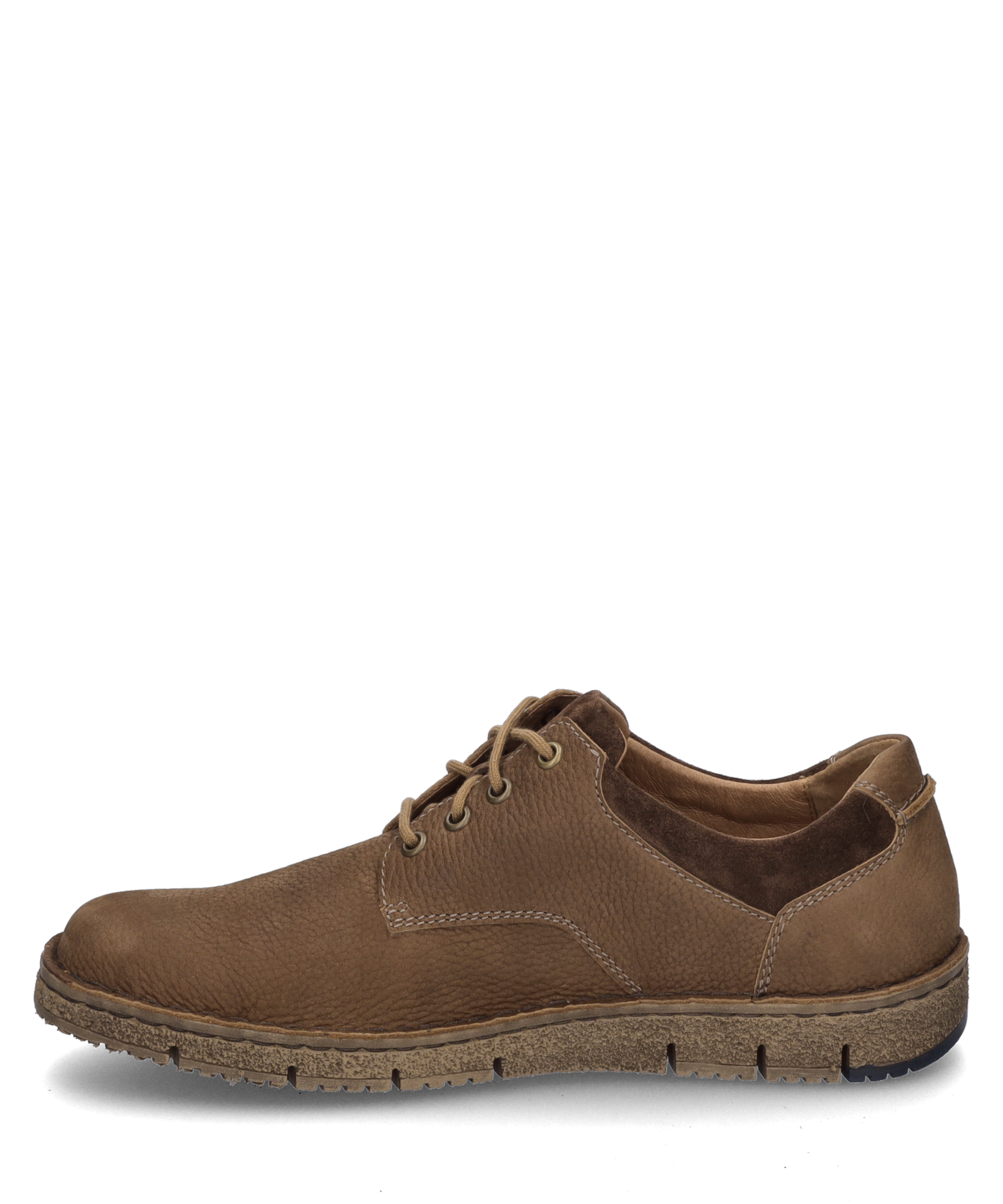 Ruben 02 in Castagne – Herren Halbschuh Robuste Rubflex-Sohle für Stabilität Hochwertiges Rindsleder für Langlebigkeit Wechselfußbett für individuellen Komfort Schnürung für sicheren Halt Elegantes Design in Castagne Stilvoller Auftritt Mit dem Ruben 02 in der eleganten Farbe Castagne setzt Du ein modisches Statement. Dieser Halbschuh für Herren vereint Stil und Komfort auf einzigartige Weise. Das hochwertige Rindsleder sorgt nicht nur für eine edle Optik, sondern auch für eine lange Lebensdauer. Die strukturierte Oberfläche verleiht dem Schuh einen charakterstarken Look, der sich perfekt für den Alltag eignet. Komfort trifft Funktion Der Ruben 02 ist mit einer flexiblen und langlebigen Rubflex-Sohle ausgestattet, die Dir Stabilität bei jedem Schritt bietet. Dank des Wechselfußbetts kannst Du den Komfort individuell anpassen und den Schuh optimal auf Deine Bedürfnisse abstimmen. Die Schnürung sorgt für einen sicheren Halt und unterstreicht das klassische Design. Traditionelle Handwerkskunst Dieser Schuh ist ein Meisterwerk traditioneller Handwerkskunst. Die Handnaht, eine selten gewordene Fertigungsart, verkörpert echte deutsche Industriekultur. Jeder Schuh ist das Resultat liebevoller Handarbeit und steht für Qualität und Präzision. Die Kollektion "Spirit of Nature" spiegelt den Einklang von Natur und Design wider und macht den Ruben 02 zu einem unverzichtbaren Begleiter. Vielseitig und Praktisch Ob im Büro oder in der Freizeit, der Ruben 02 passt sich jeder Situation an. Sein elegantes Design in der Farbe Castagne macht ihn zu einem vielseitigen Begleiter, der sich leicht kombinieren lässt. Die robuste Schnürung und das strapazierfähige Material garantieren Langlebigkeit und Komfort. Dein perfekter Begleiter Entdecke den Ruben 02 und erlebe, wie Stil und Funktionalität harmonisch miteinander verschmelzen. Dieser Halbschuh ist mehr als nur ein Schuh – er ist ein Ausdruck von Persönlichkeit und Stilbewusstsein. Lass Dich von der Qualität und dem Design überzeugen und mache den Ruben 02 zu Deinem neuen Lieblingsschuh.