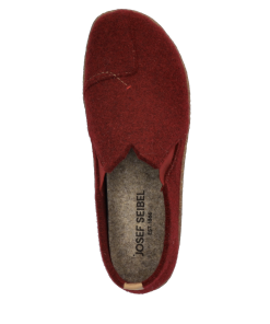 Vinny 05 in bordeaux – Damen Hausschuh Weiches Filzmaterial für maximalen Komfort Ergonomische Sohle für optimalen Halt Einfaches Anziehen dank Gummizug Wechselfußbett für individuelle Anpassung Elegantes bordeauxfarbenes Design Komfort trifft Stil Erlebe den Vinny 05, einen Hausschuh, der Komfort und Stil perfekt vereint. Das weiche Filzmaterial umschmeichelt Deine Füße und sorgt für ein angenehmes Tragegefühl. Die bordeauxrote Farbe verleiht dem Schuh eine elegante Note, die in jedem Zuhause ein Highlight setzt. Perfekte Passform Dank des praktischen Gummizugs lässt sich der Vinny 05 mühelos an- und ausziehen. Die ergonomische Sohle bietet Dir optimalen Halt, während das Wechselfußbett eine individuelle Anpassung ermöglicht. So genießt Du jederzeit den besten Komfort. Nachhaltigkeit im Fokus Mit der Kombination aus TR und Kork als Sohlenmaterial setzt dieser Hausschuh auf Nachhaltigkeit. Beide Materialien sind nicht nur rutschfest und leicht, sondern auch langlebig und umweltfreundlich. So kannst Du mit gutem Gewissen entspannen. Qualität, die überzeugt Die Strobel Machart sorgt für eine stabile Verbindung zwischen Schaft und Sohle, was die Langlebigkeit des Schuhs erhöht. Diese Fertigungsart ist bekannt für ihre Strapazierfähigkeit und bietet Dir die Qualität, die Du von JOSEF SEIBEL erwartest. Ein Klassiker neu interpretiert Die Relax-Kollektion von JOSEF SEIBEL steht für Passformgarantie und beste Qualität. Der Vinny 05 ist ein Klassiker, der mit seinem neuen Namen und Design überzeugt. Lass Dich von der Kombination aus Tradition und Innovation begeistern.